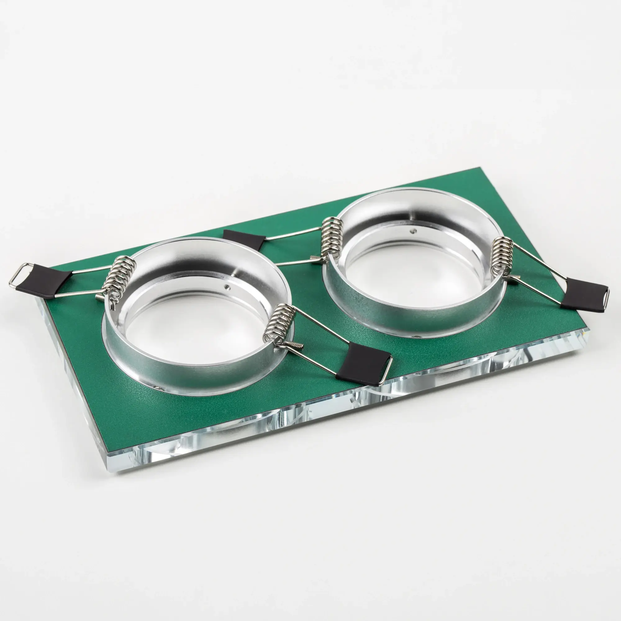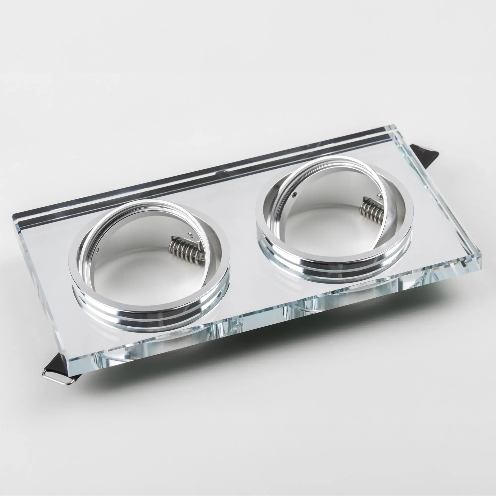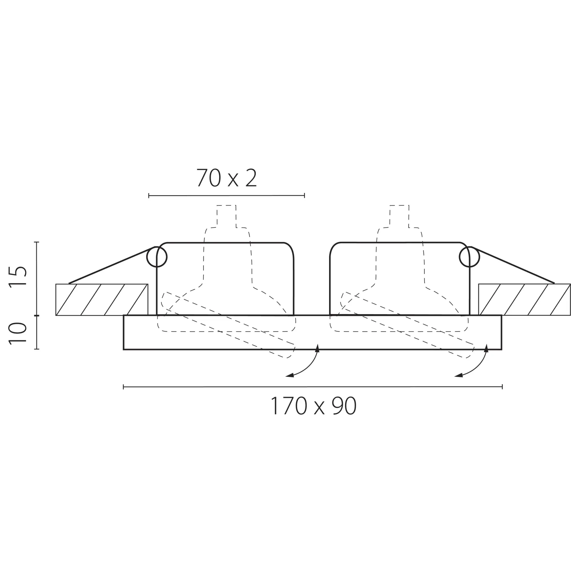 Врезное отверстие: d2х70 h15; Внешние габариты: D170х90 Н10; Материал - основание/плафон: металл / стекло; Цвет-основание/плафон: хром/зеркальный; Лампа: 12В/220В MR16/HP16 Gu5.3/GU10 max 50Вт;
