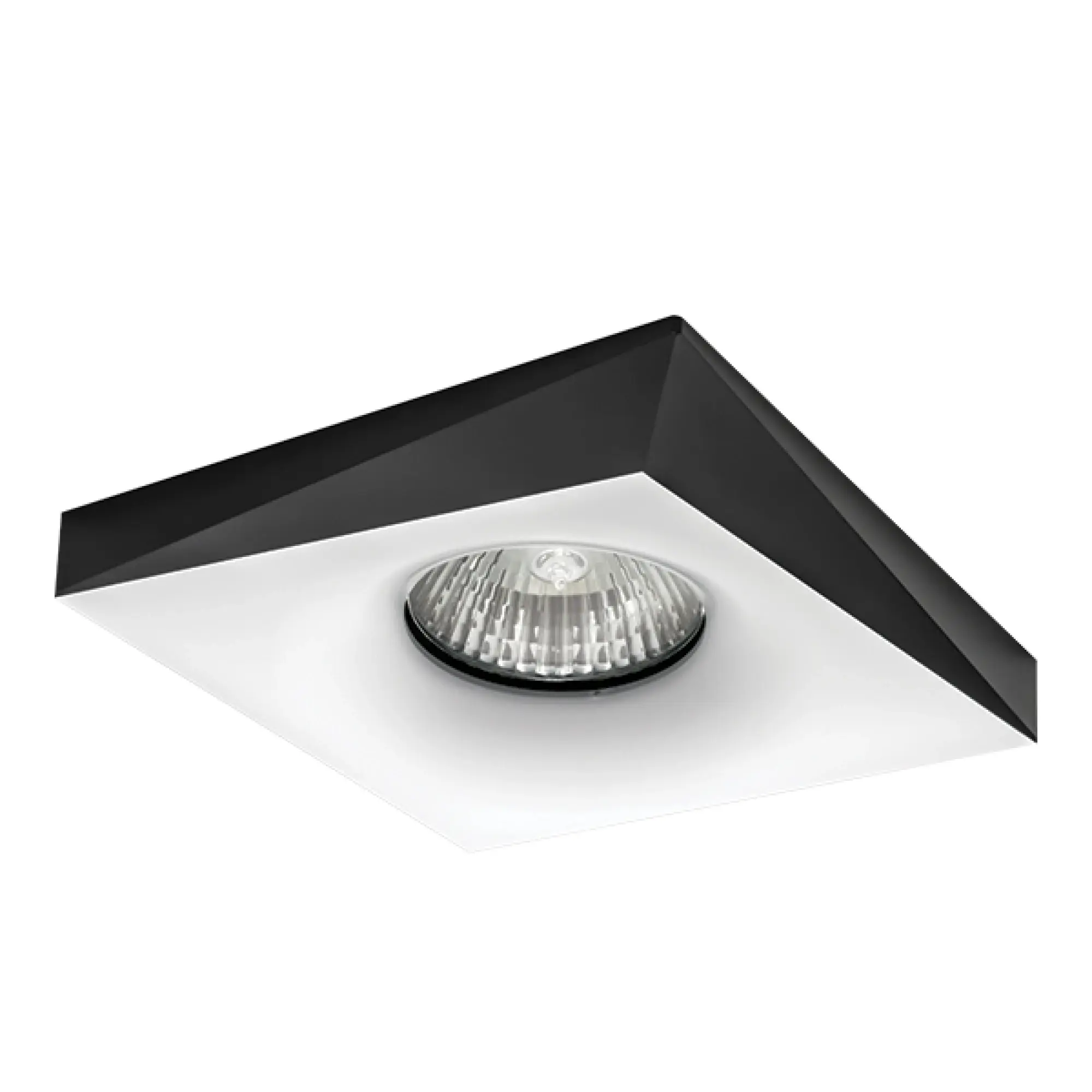 Врезное отверстие: d65 h20; Внешние габариты: L+W100 H15; Материал - основание/плафон: металл / металл; Цвет-основание/плафон: white+black (in+out); Лампа: 12В/220В MR16/HP16 Gu5,3/GU10 max 50Вт;