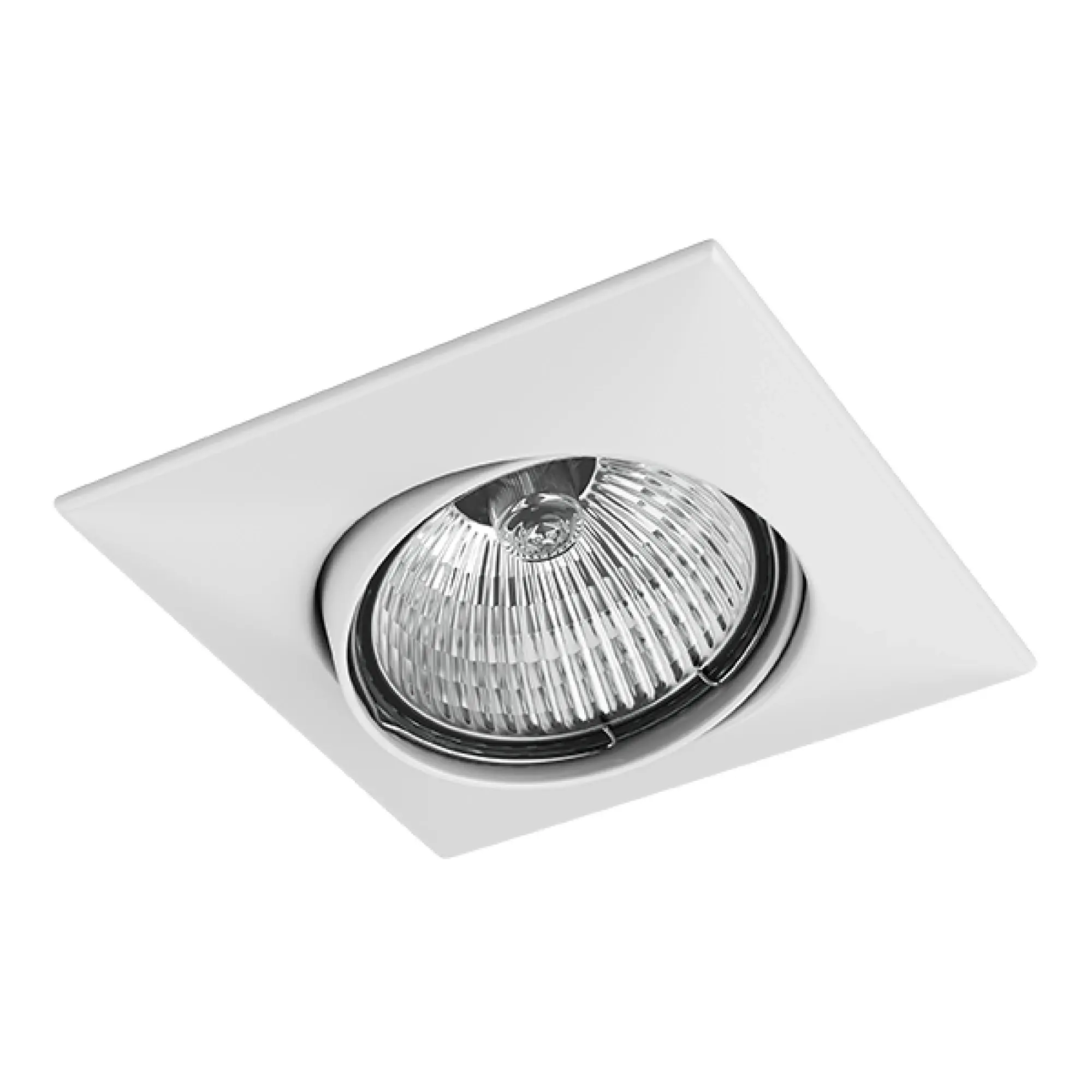 Врезное отверстие: d75 h60; Внешние габариты: 85x85 H5; Материал - основание/плафон: металл; Цвет-основание/плафон: белый; Лампа: 12В/220В MR16 Gu5.3 max 50Вт, 220В HP16 GU10/GZ10 max 50Вт;