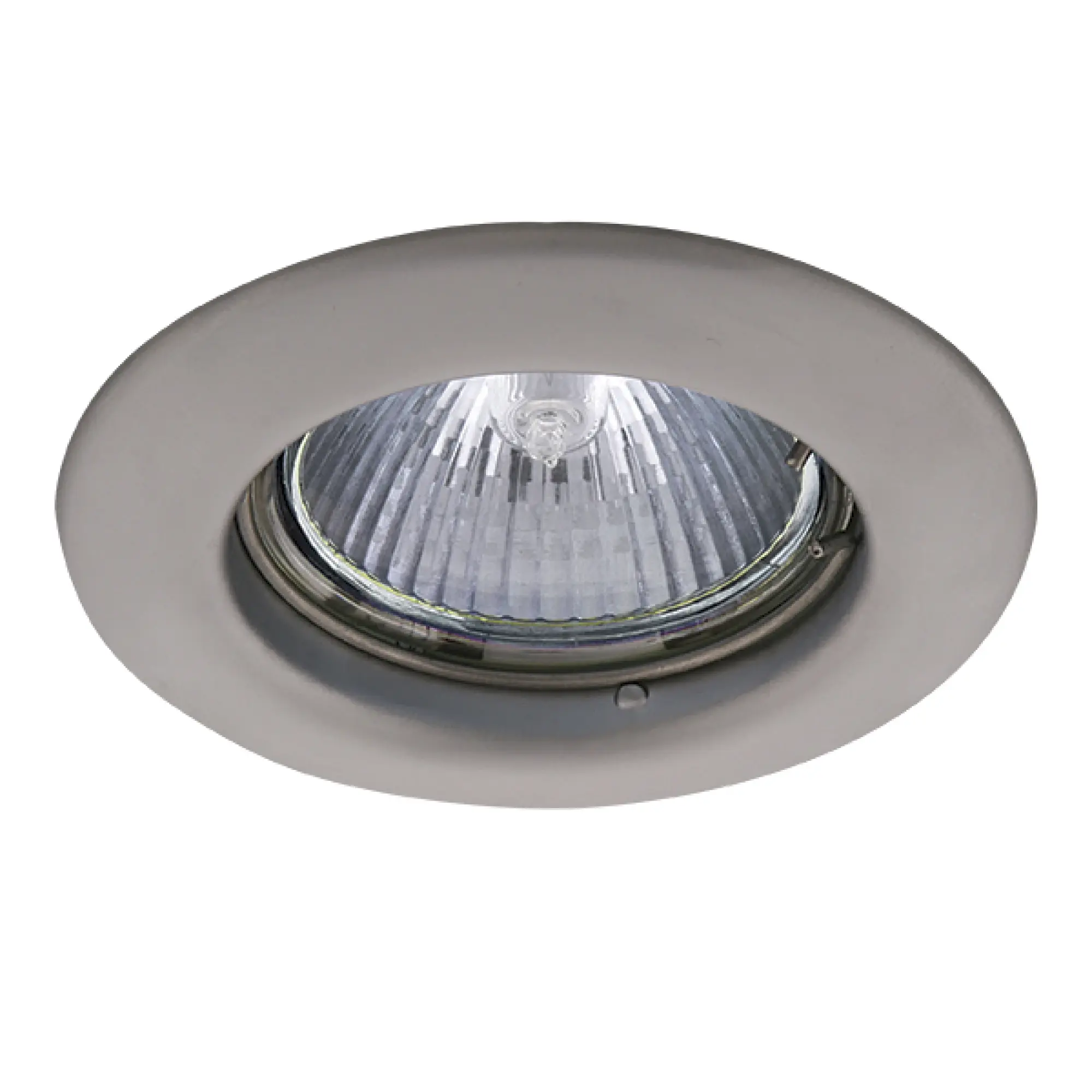 Врезное отверстие: d60 h60; Внешние габариты: D77 H5; Материал - основание/плафон: металл; Цвет-основание/плафон: мат.хром; Лампа: "12В/220В MR16 Gu5.3 max 50Вт, 220В HP16 GU10/GZ10 max 50Вт;