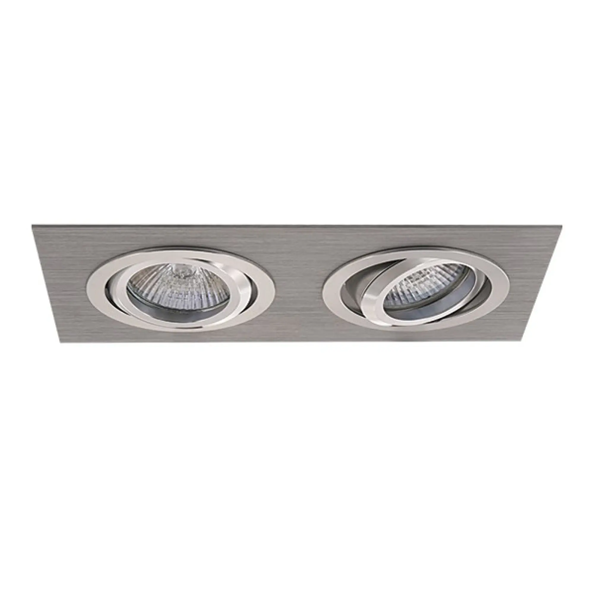 Врезное отверстие: 85x170 h60; Внешние габариты: 100x190 H5; Материал - основание/плафон: алюминий; Цвет-основание/плафон: алюминий, хром; Лампа: 12В/220В MR16 Gu5,3 max 50Вт, 220В HP16 GU10/GZ10 max 50Вт;