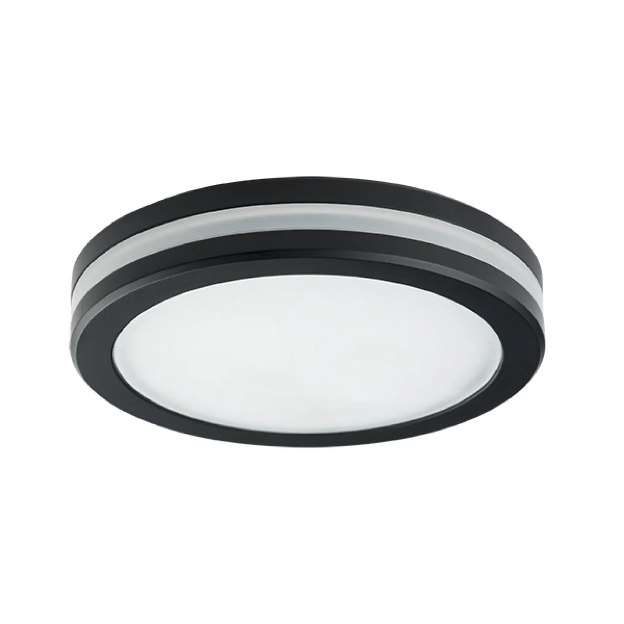 Врезное отверстие: d 68 h 20; Внешние габариты: D 79 H 20; Материал - основание/плафон: металл / акрил (мат,); Цвет-основание/плафон: черный/матовый; Лампа: LED 220V 5Вт=50Вт; Световой поток: 470LM; 3000К