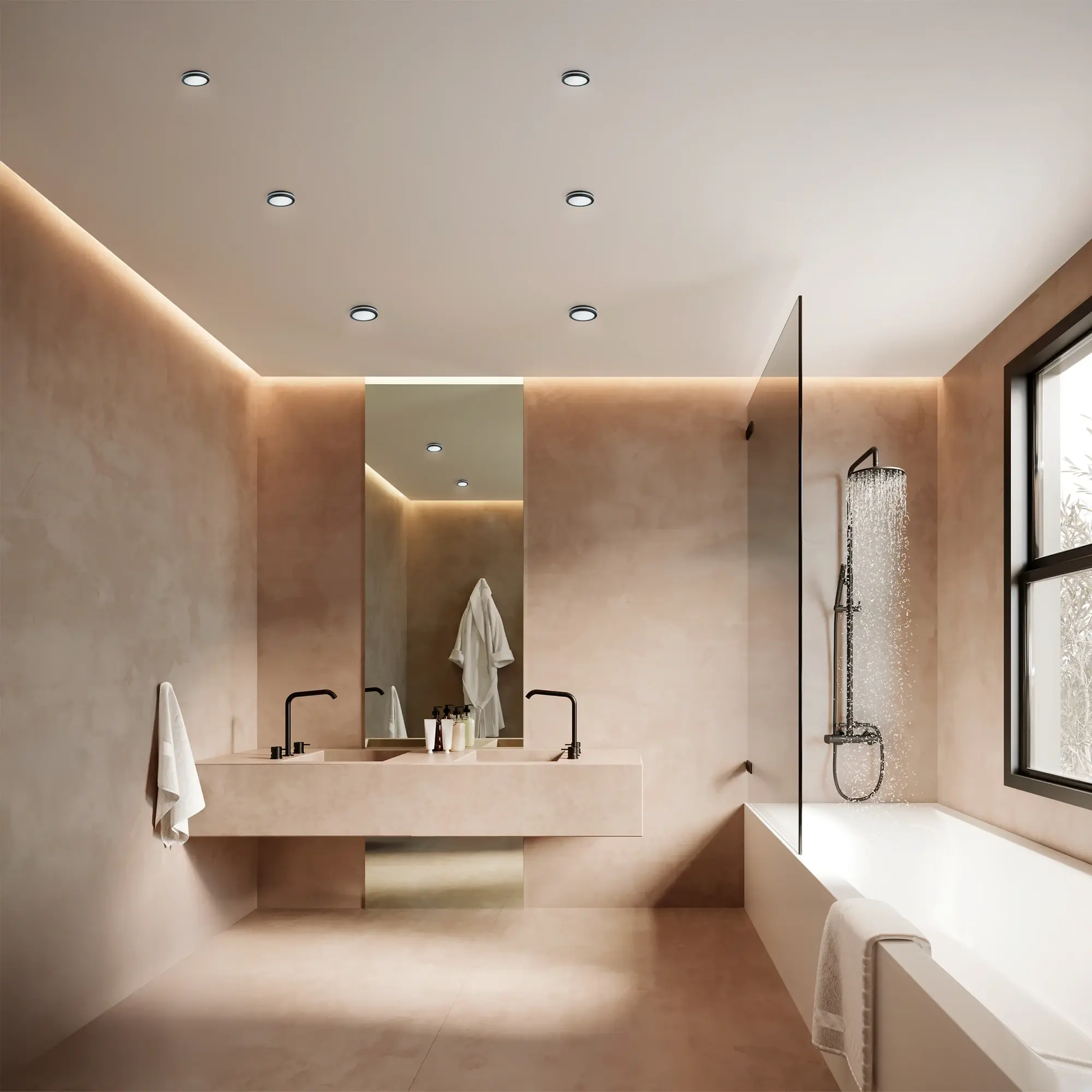 Врезное отверстие: d 62 h 20; Внешние габариты: D 110 H 26; Материал - основание/плафон: металл / акрил (мат,); Цвет-основание/плафон: черный/матовый; Лампа: LED 220V 15Вт=150Вт; Световой поток: 1200LM; 4000К