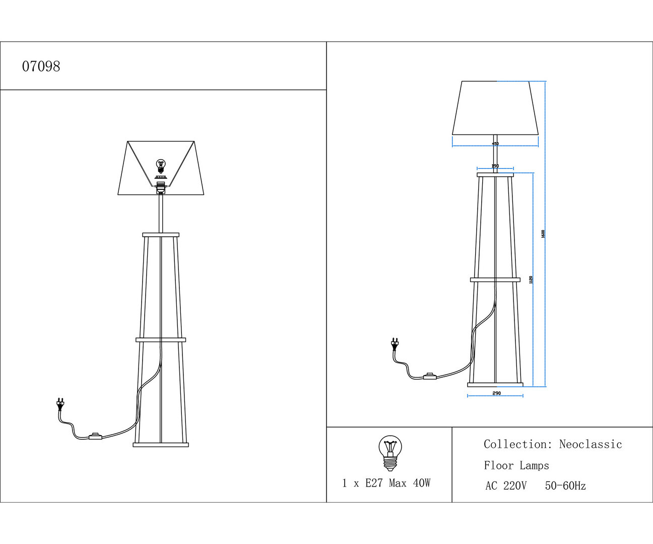 07098,01 Торшер Аликанте белый d45 h155 E27 1*40W