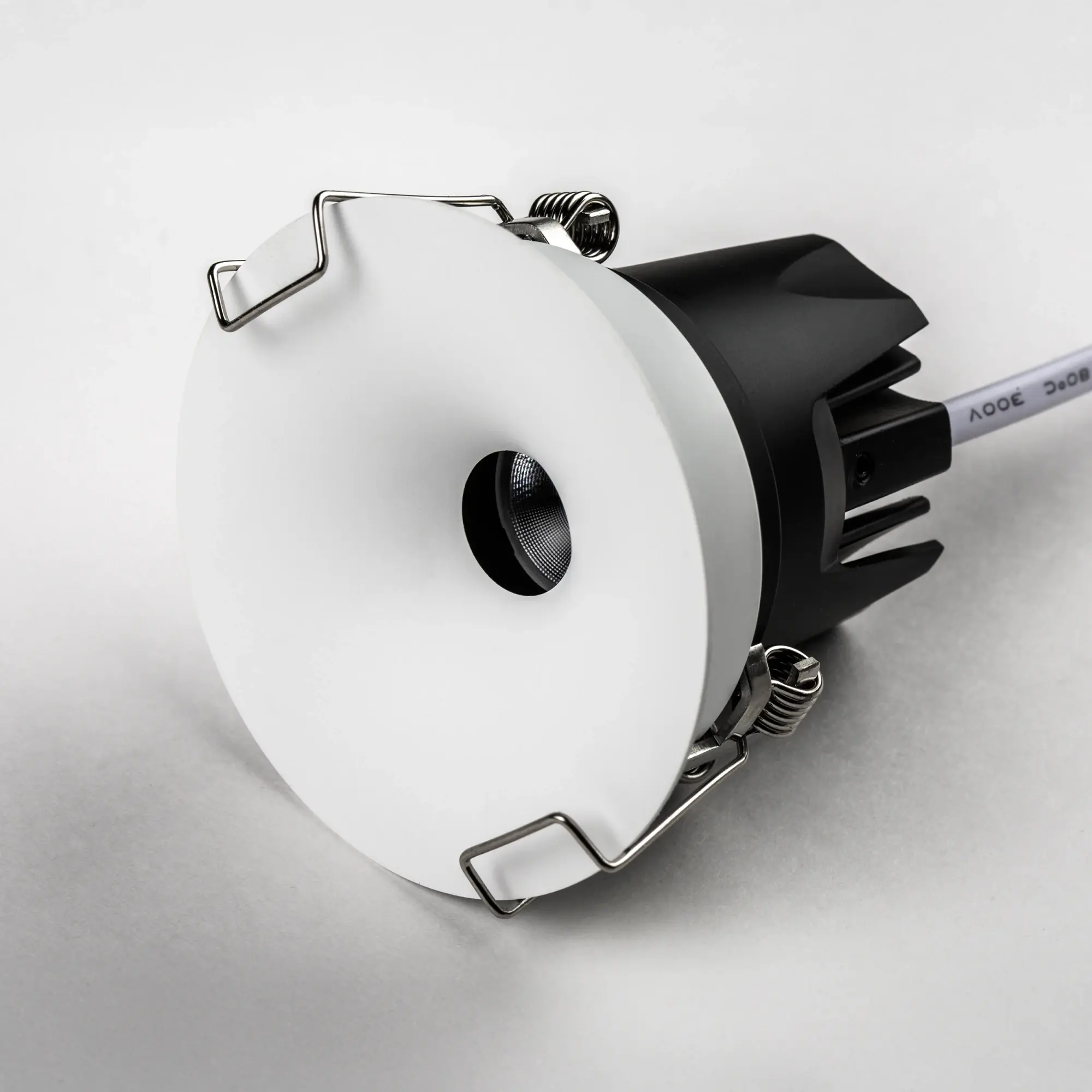 Врезное отверстие: d55; Внешние габариты: D65 H56; Материал - основание/плафон: металл; Цвет-основание/плафон: белый; Лампа: LED 7W= 70W, Световой поток: 490LM; 4000К; Угол рассеивания: 24G; Особенности: возможна замена оптики на 36°
