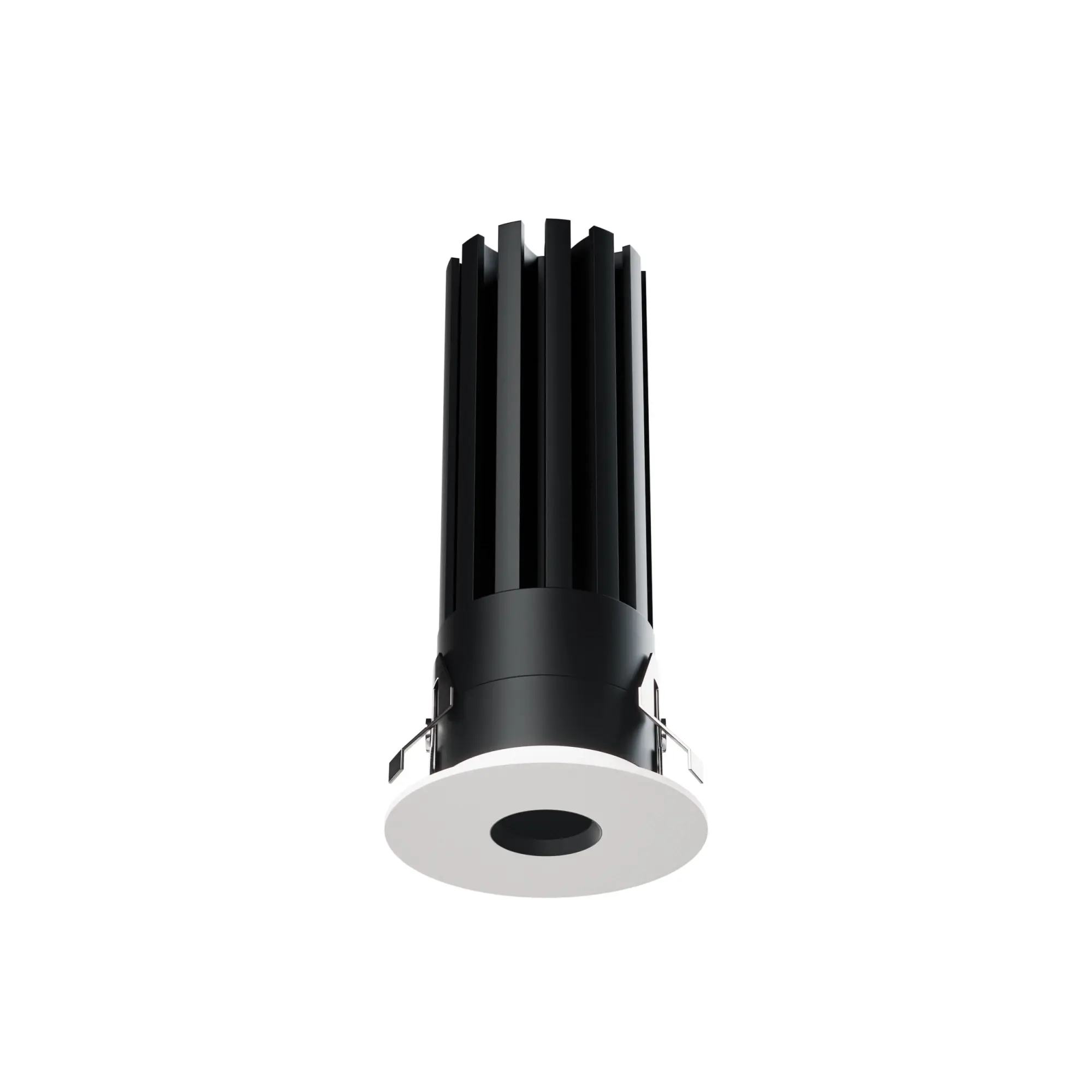 Врезное отверстие: d45; Внешние габариты: D56 H100; Материал - основание/плафон: металл; Цвет-основание/плафон: белый; Лампа: LED 12W= 120W, Световой поток: 720LM; 3000К; Угол рассеивания: 24G; Особенности: