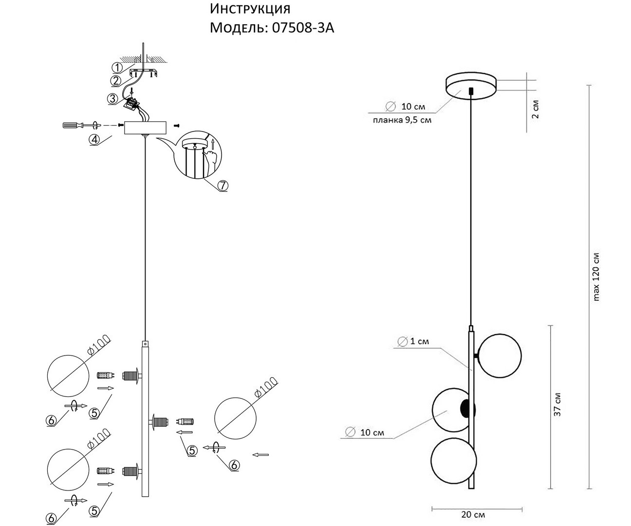 07508-3A,19 Подвес Сида черный d20 h120 G9 3*5W (4000K) (Led лампы в комплекте 4000К)