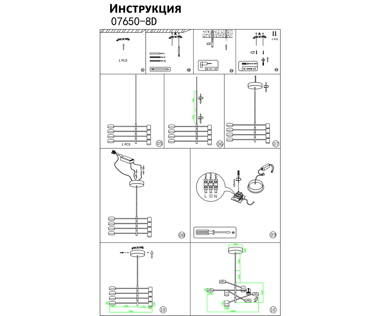 07650-8D,19(4000K) Люстра диммируемая Мекли черный d100 h90 Led 4*12w+4*16w (4000K) с пультом ДУ