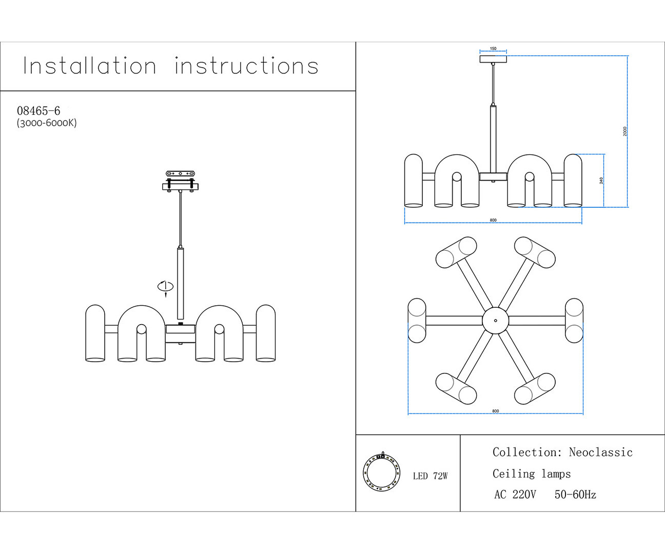 08465-6,19 Люстра Канти черный d80 h150 Led 72W (3000-6000K)