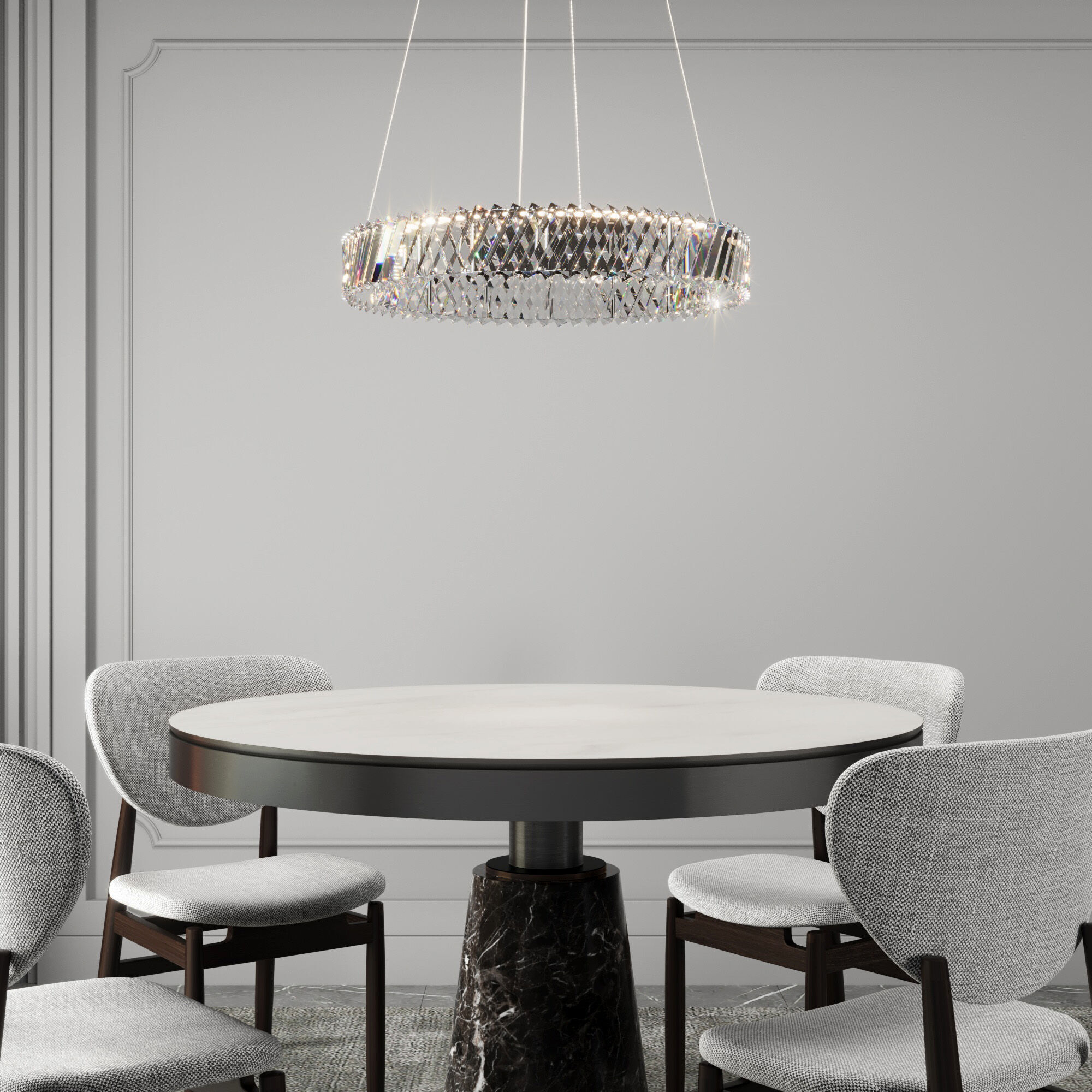 <p>Элегантный дизайн светильника 101004 LED превратит любое помещение в роскошное пространство.<br>Геометрически правильная форма кольца, украшенная множеством сияющих кристаллов, создает завораживающий эффект.<br>Премиальный материал, хрусталь Strotskis, великолепно преломляет свет, наполняя комнату мягким и приятным сиянием.<br>Светильник прекрасно впишется в современный, минималистичный или классический интерьер.<br>Игра света и тени, создаваемая кристаллами, придаст вашему дому уют и торжественность.</p>