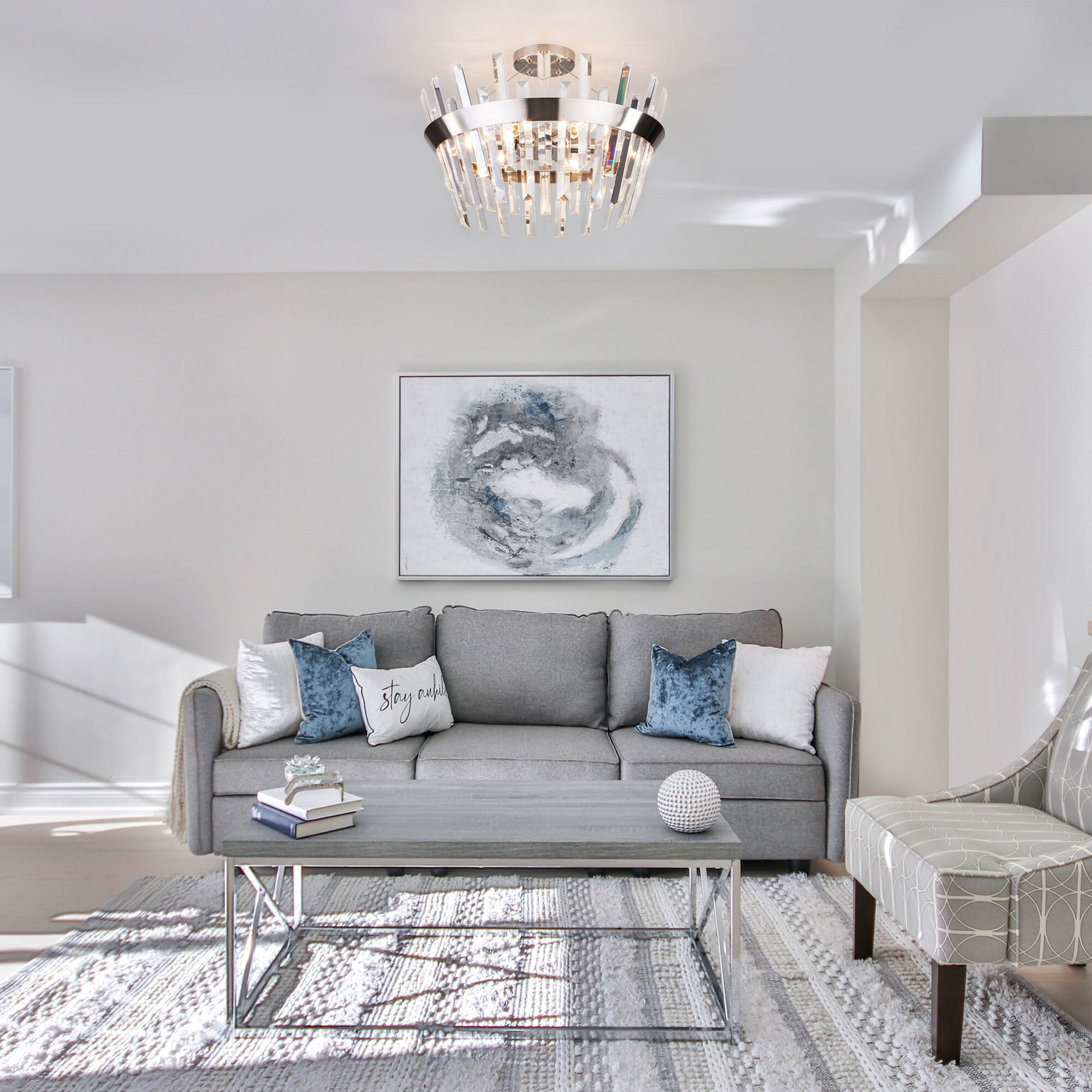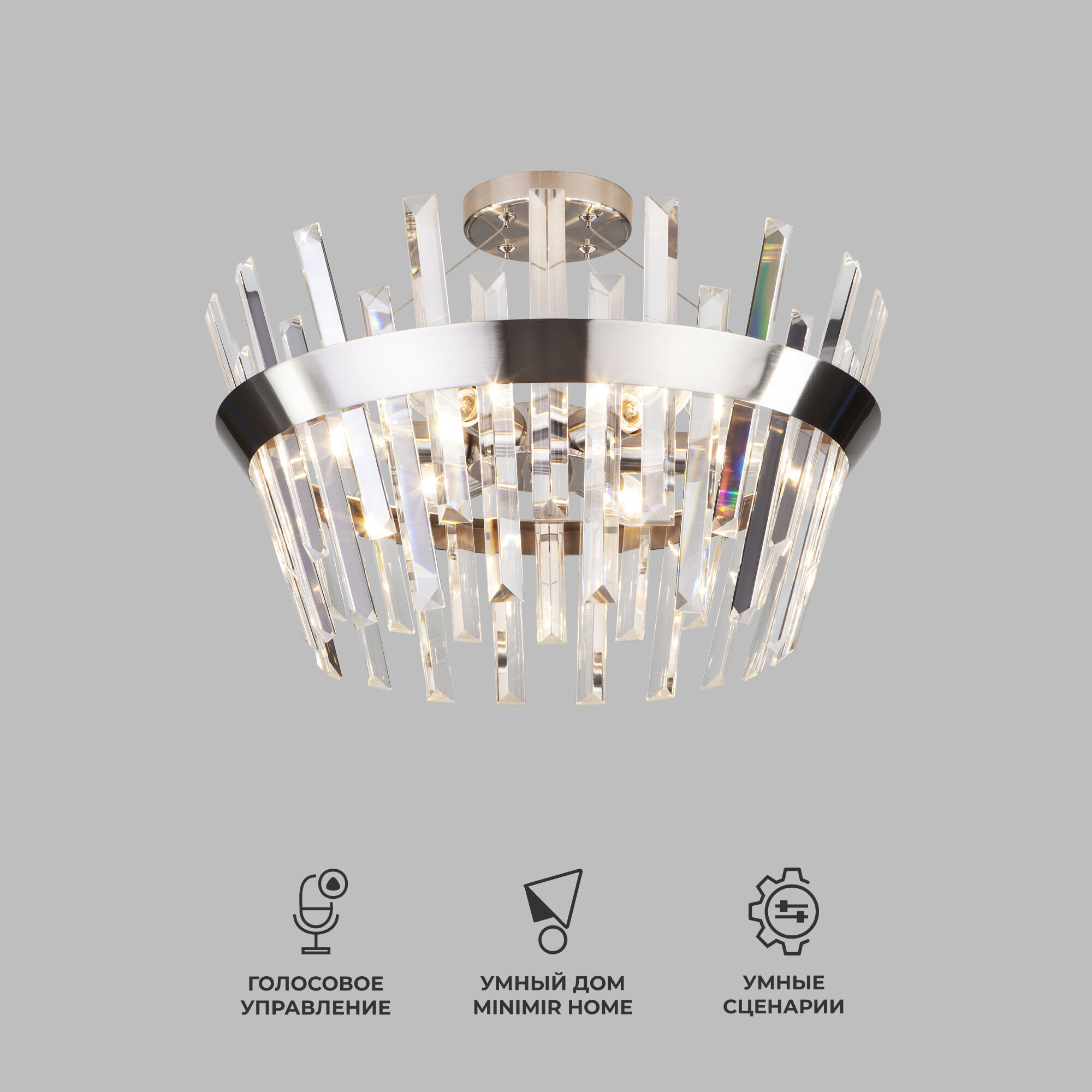 Умная потолочная люстра с хрусталем 10111/5 сатин-никель/прозрачный хрусталь Strotskis
