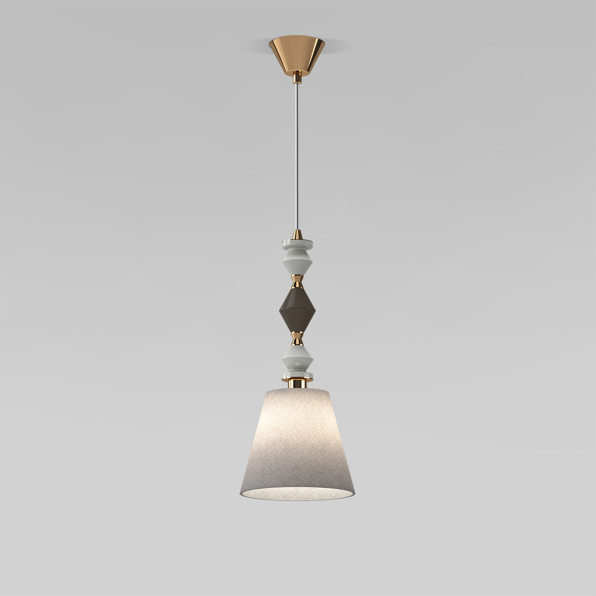 <p>Подвесной светильник коллекции Olaria &ndash; не просто источник света, а элегантный элемент декора.</p> <p>Сочетание контрастных форм и цветов вносит динамику и оригинальность в облик светильника.<br>Тканевый абажур создает приятное, не слепящее освещение, идеально подходящее для гостиной, спальни или столовой.<br>Керамический декор светильника говорит о внимании к качеству и долговечности изделия и позволяет гармонично вписать в современный интерьер в стиле минимализм или эклектика.</p>