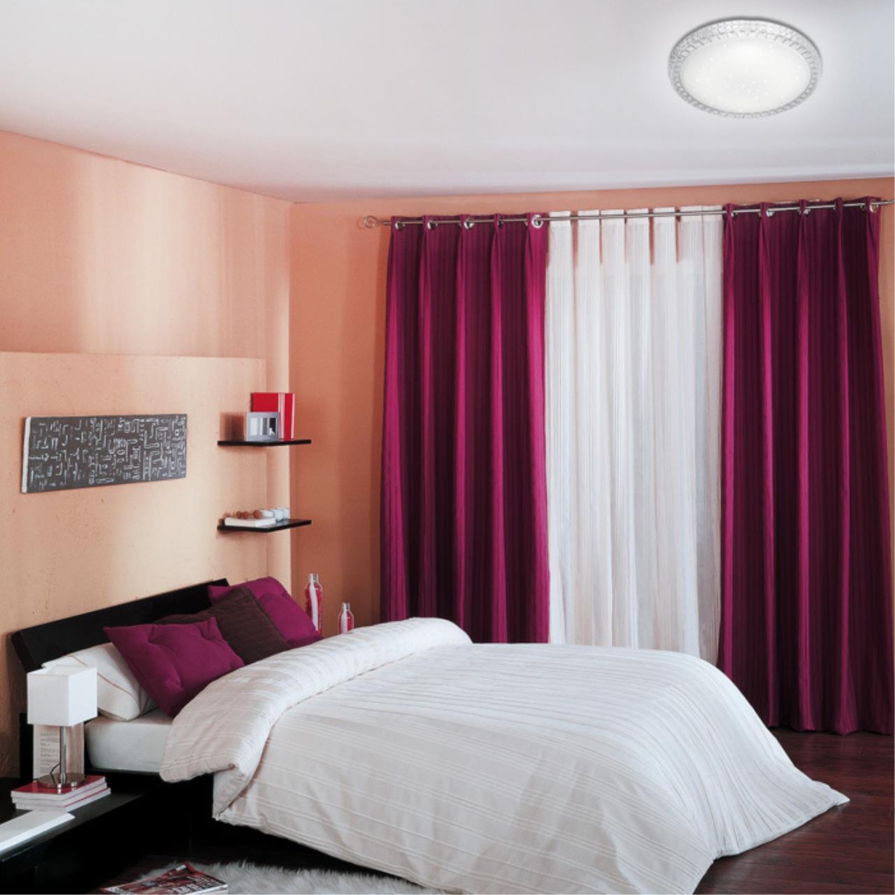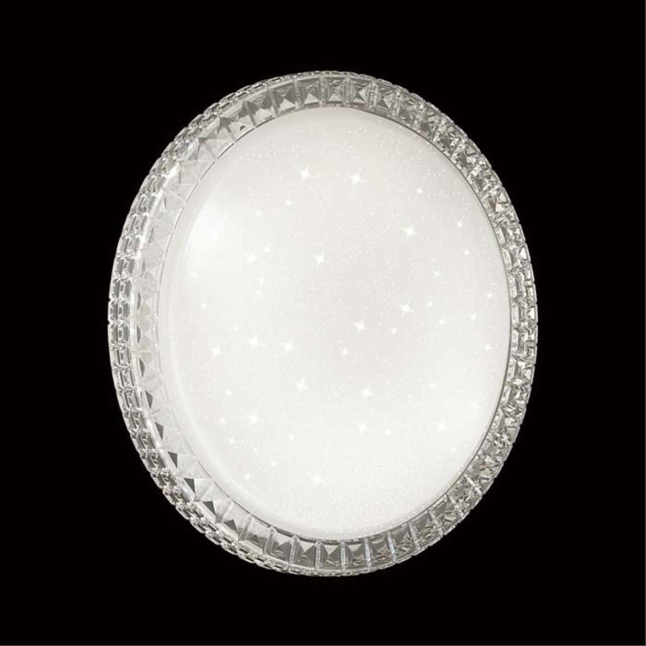 Светильник 2036/DLN линии BRISA состоит из металлического основания (базы) и пластикового рассеивателя. Материал рассеивателя — высококачественный акрил белого цвета с глянцевой поверхностью, обеспечивающий светильнику равномерное рассеивание и хорошее светопропускание. Форма плафона: круглая, декорирована рисунком в виде прозрачных точек и рельефным ободом, которые придают включенному светильнику красивый эффект «звездного мерцания» и переливания. Степень защиты IP43 позволяет использовать светильник в определенных зонах влажных помещений. В комплект входит LED-модуль с линзами мощностью 48 Вт, соответствующей лампе накаливания 515 Вт, а также переключатель температуры цвета (ССT) на драйвере, с помощью которого осуществляется изменение цветовой температуры 3000/4000/6000 К и переход светильника в режим теплого/белого/холодного света. Для установки необходимого режима рекомендуется использовать удлиненный тонкий предмет типа небольшой отвертки.
