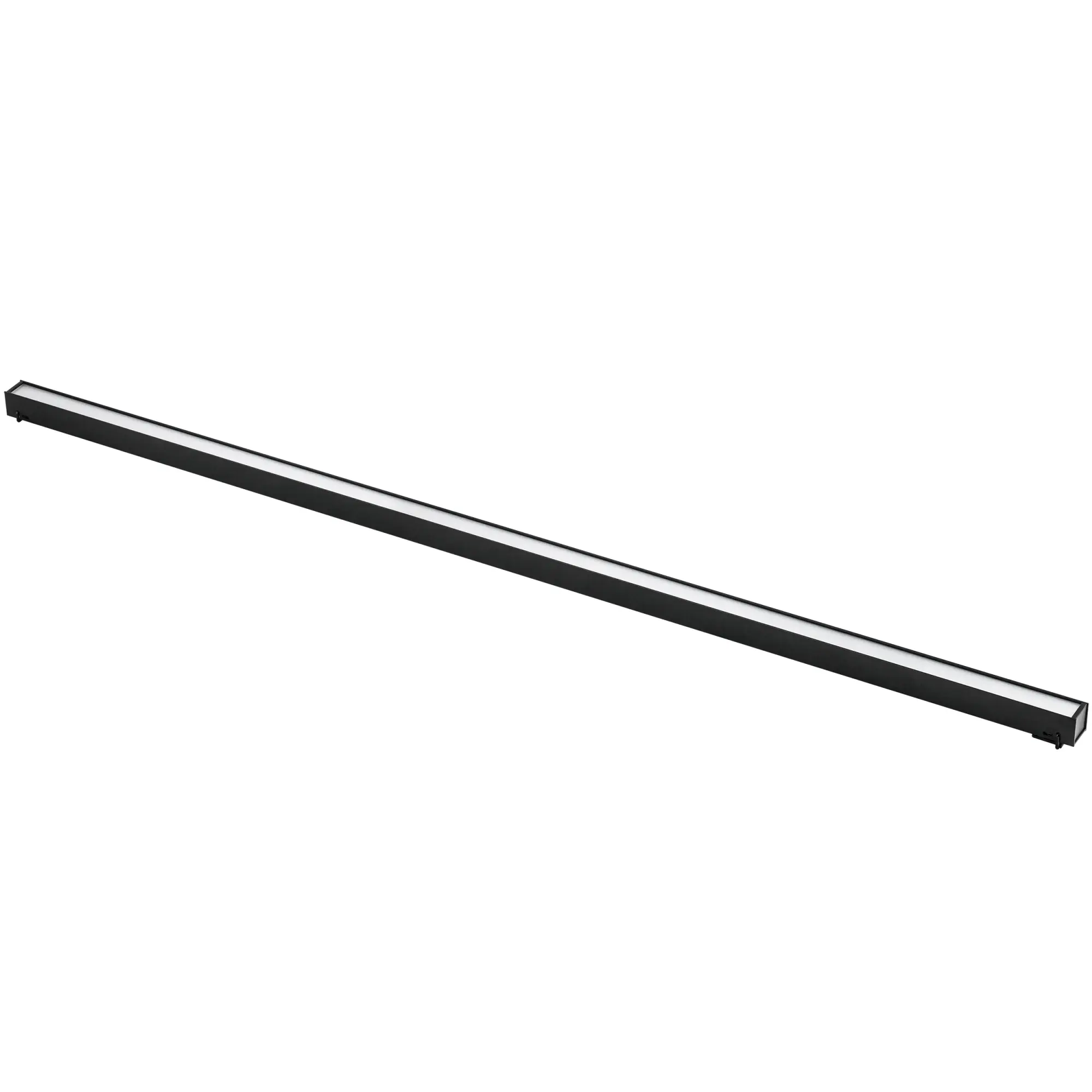 Внешние габариты: D 2000 W40 H45; Материал - основание/плафон: Металл ; Цвет-основание/плафон: черный; Лампа: LED 36Вт соответствует 360 Вт лампе накаливания, Световой поток: 5088LM; Угол рассеивания: 100G; 3000К