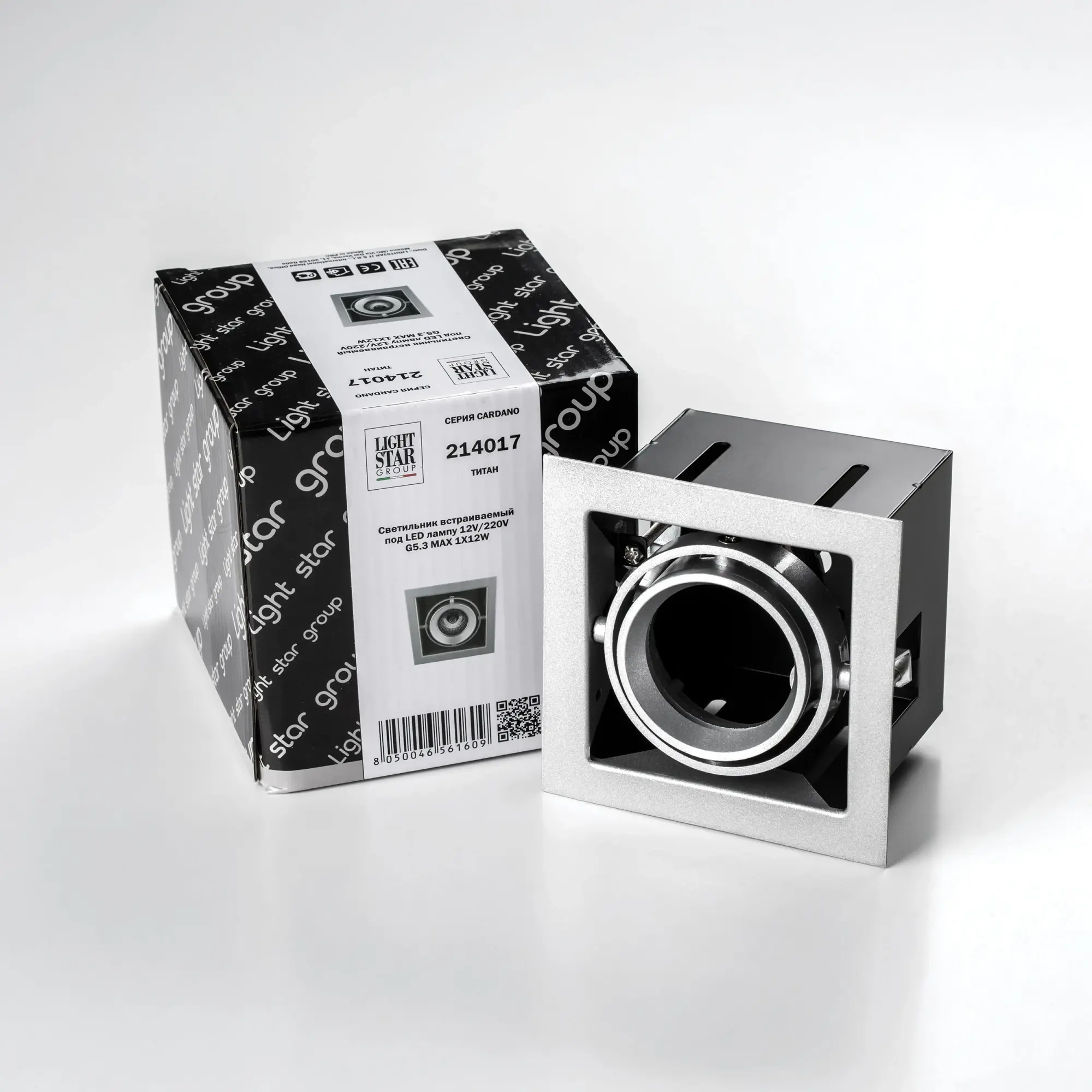 Врезное отверстие: 95x95 h100; Внешние габариты: 110x110 H5; Материал - основание/плафон: металл; Цвет-основание/плафон: титан; Лампа: 12 В MR16 max 50 Вт 2, 220 В HP16 max 50 Вт;