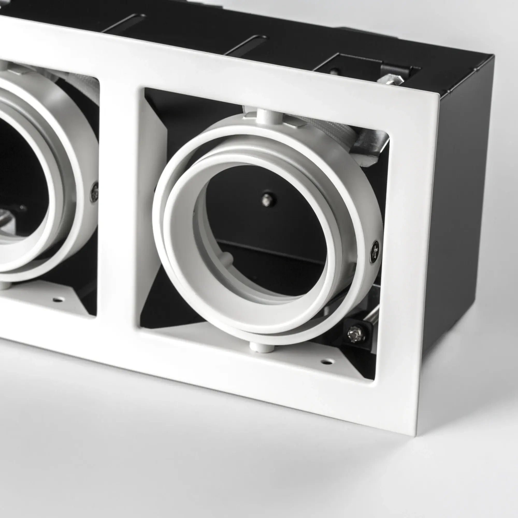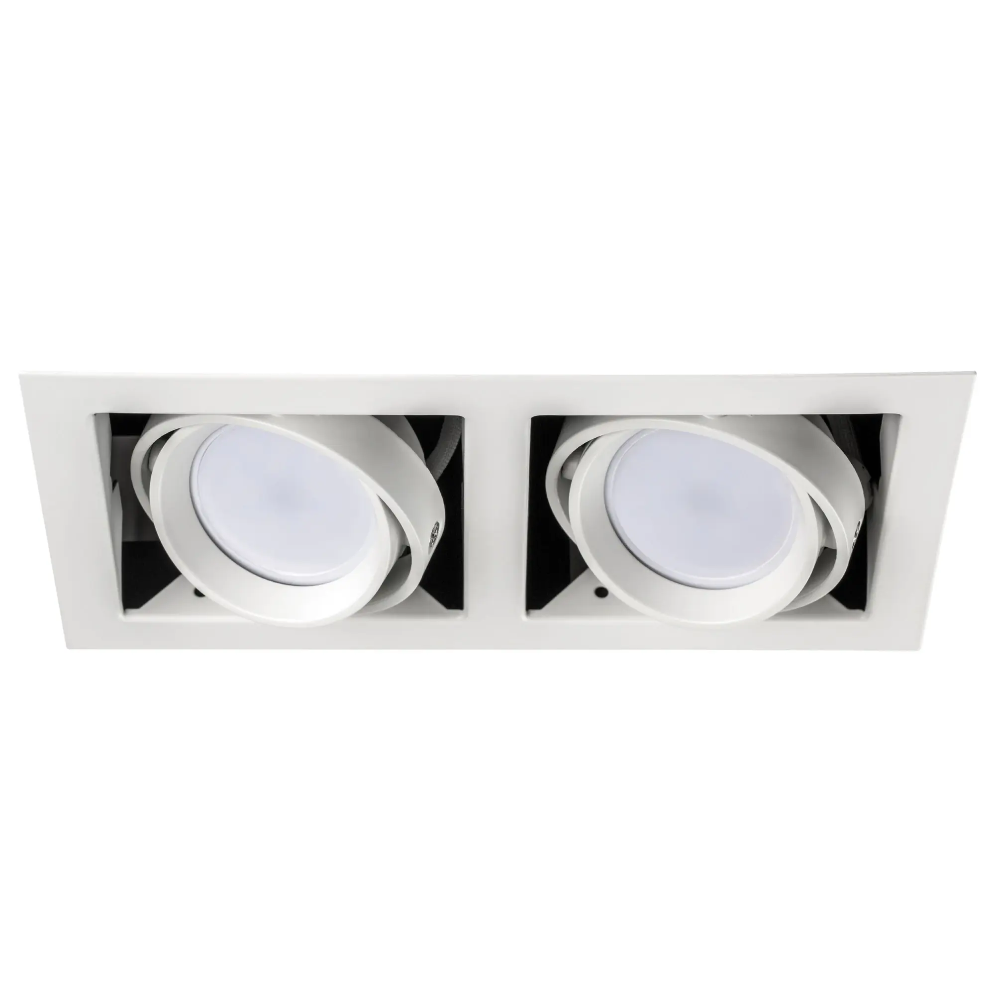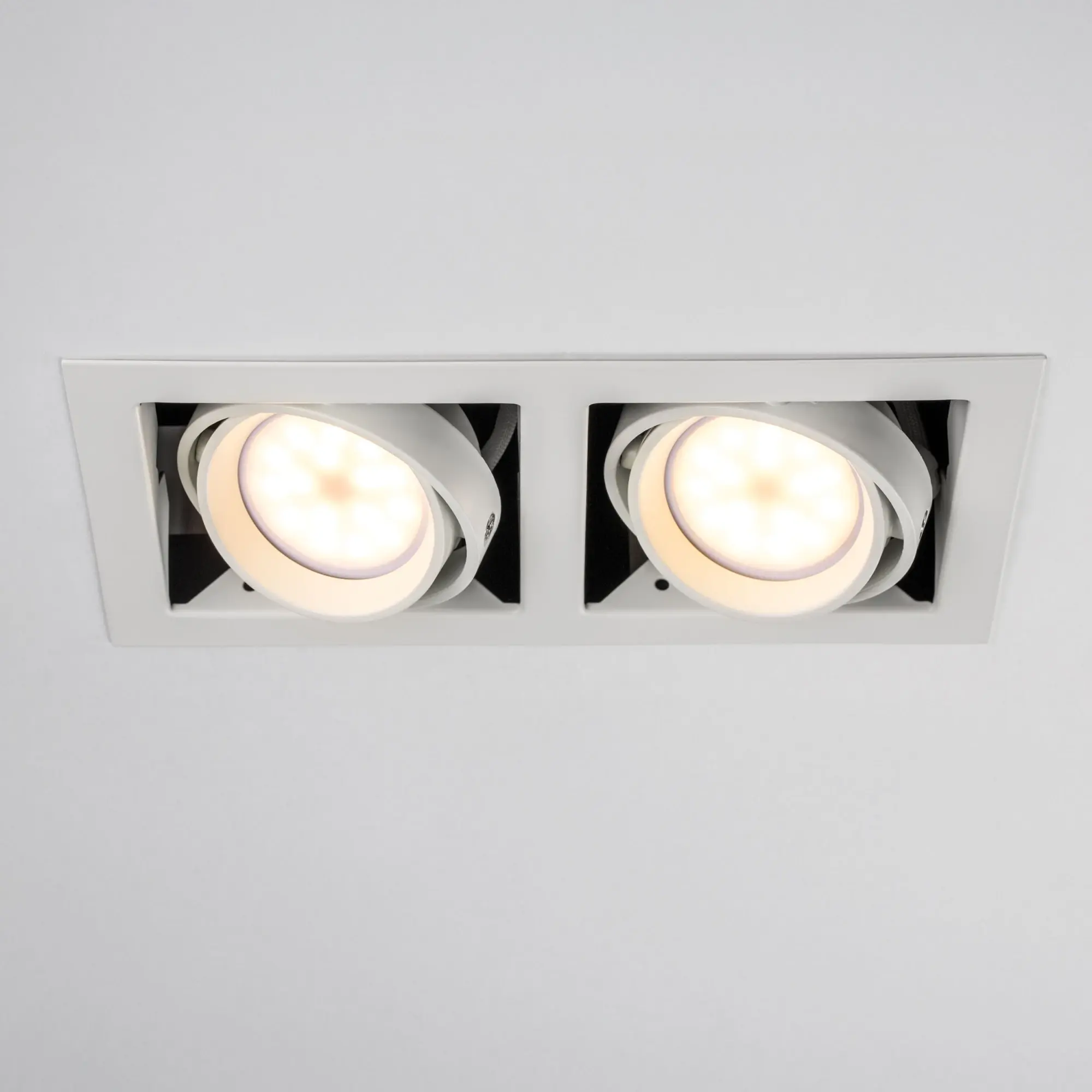 Врезное отверстие: 95x190 h100; Внешние габариты: 110x206 H5; Материал - основание/плафон: металл; Цвет-основание/плафон: белый; Лампа: 12 В MR16 max 50 Вт 2, 220 В HP16 max 50 Вт;
