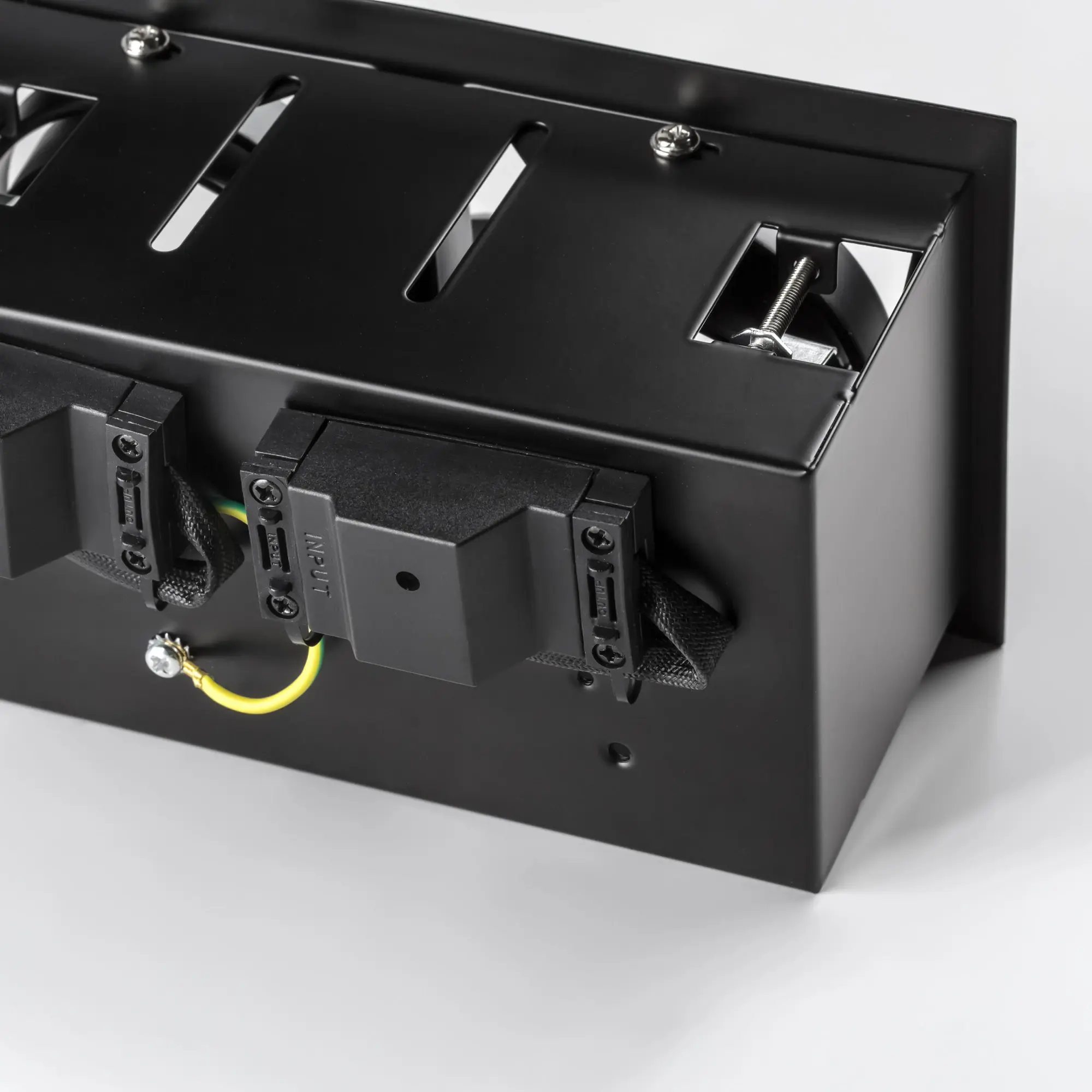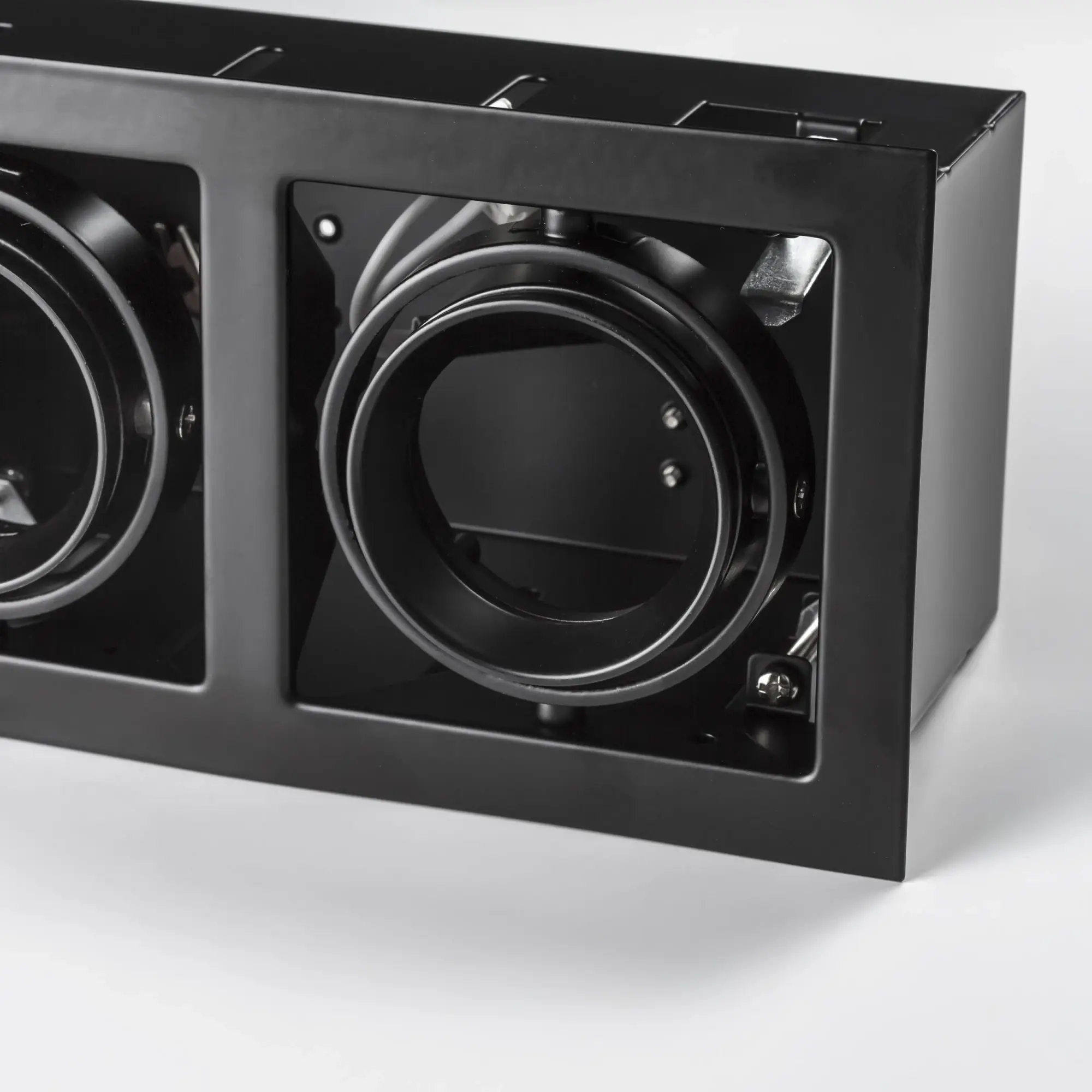 Врезное отверстие: 95x190 h100; Внешние габариты: 110x206 H5; Материал - основание/плафон: металл; Цвет-основание/плафон: черный; Лампа: 12 В MR16 max 50 Вт 2, 220 В HP16 max 50 Вт;