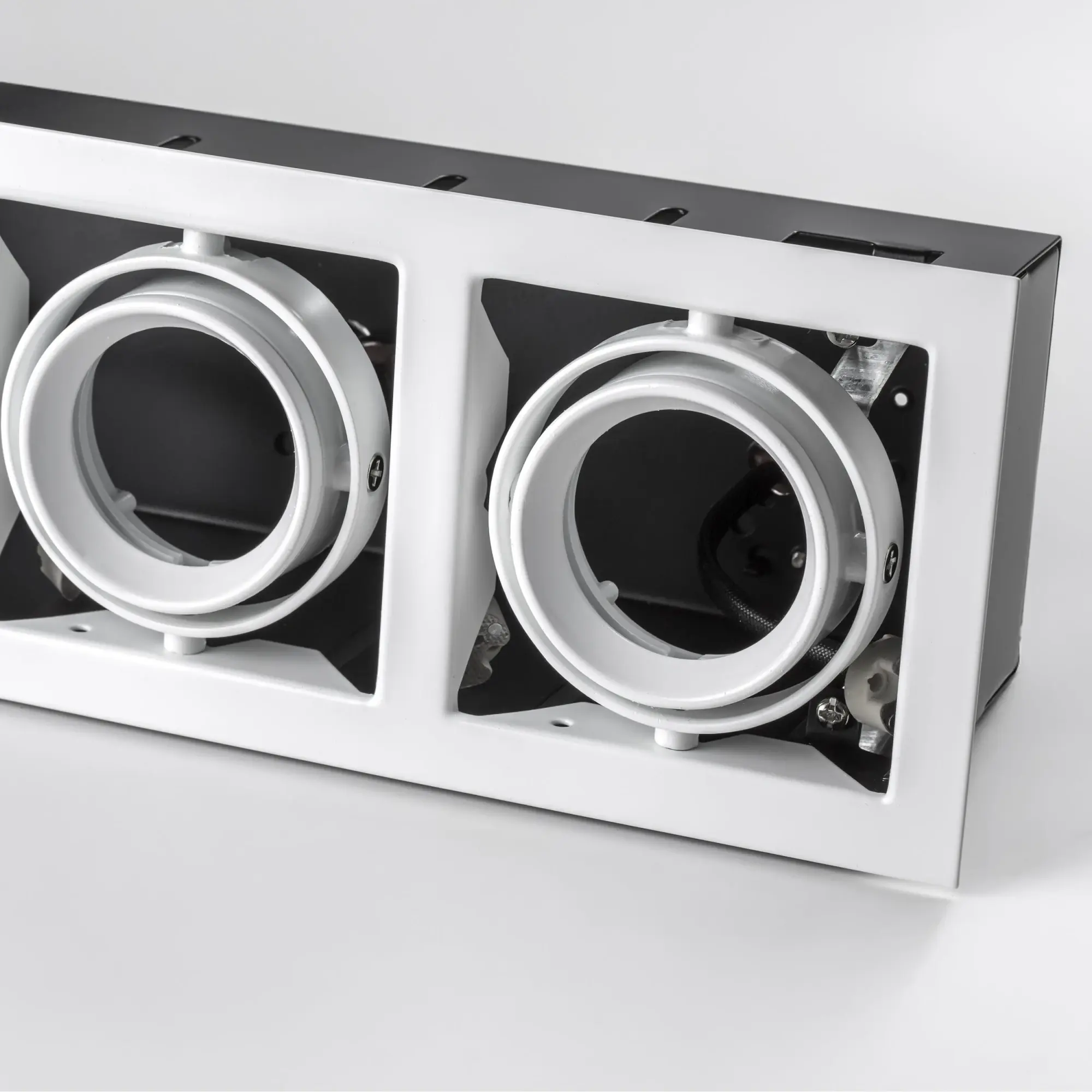 Врезное отверстие: 95x285 h100; Внешние габариты: 110x302 H5; Материал - основание/плафон: металл; Цвет-основание/плафон: белый; Лампа: 12 В MR16 max 50 Вт 2, 220 В HP16 max 50 Вт;