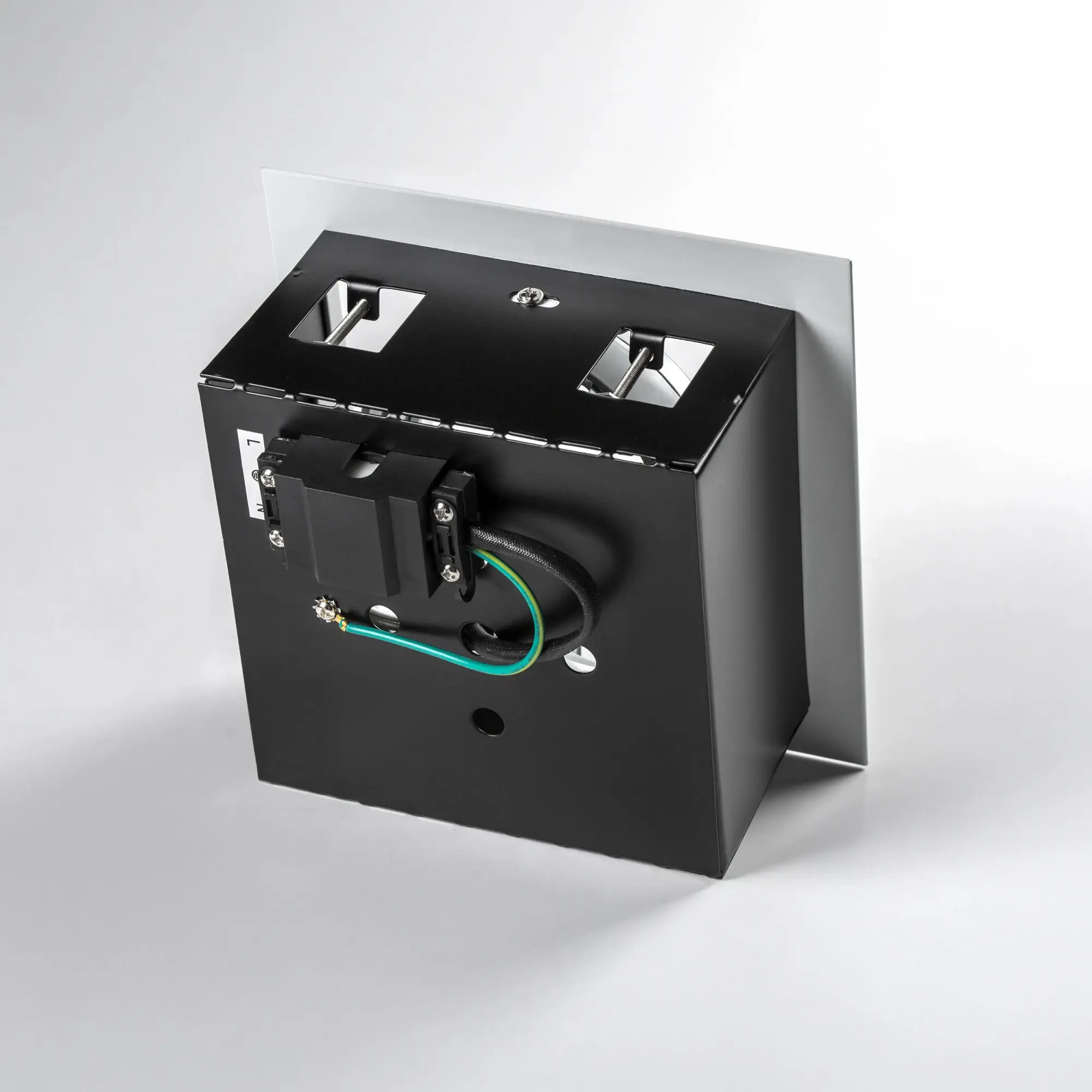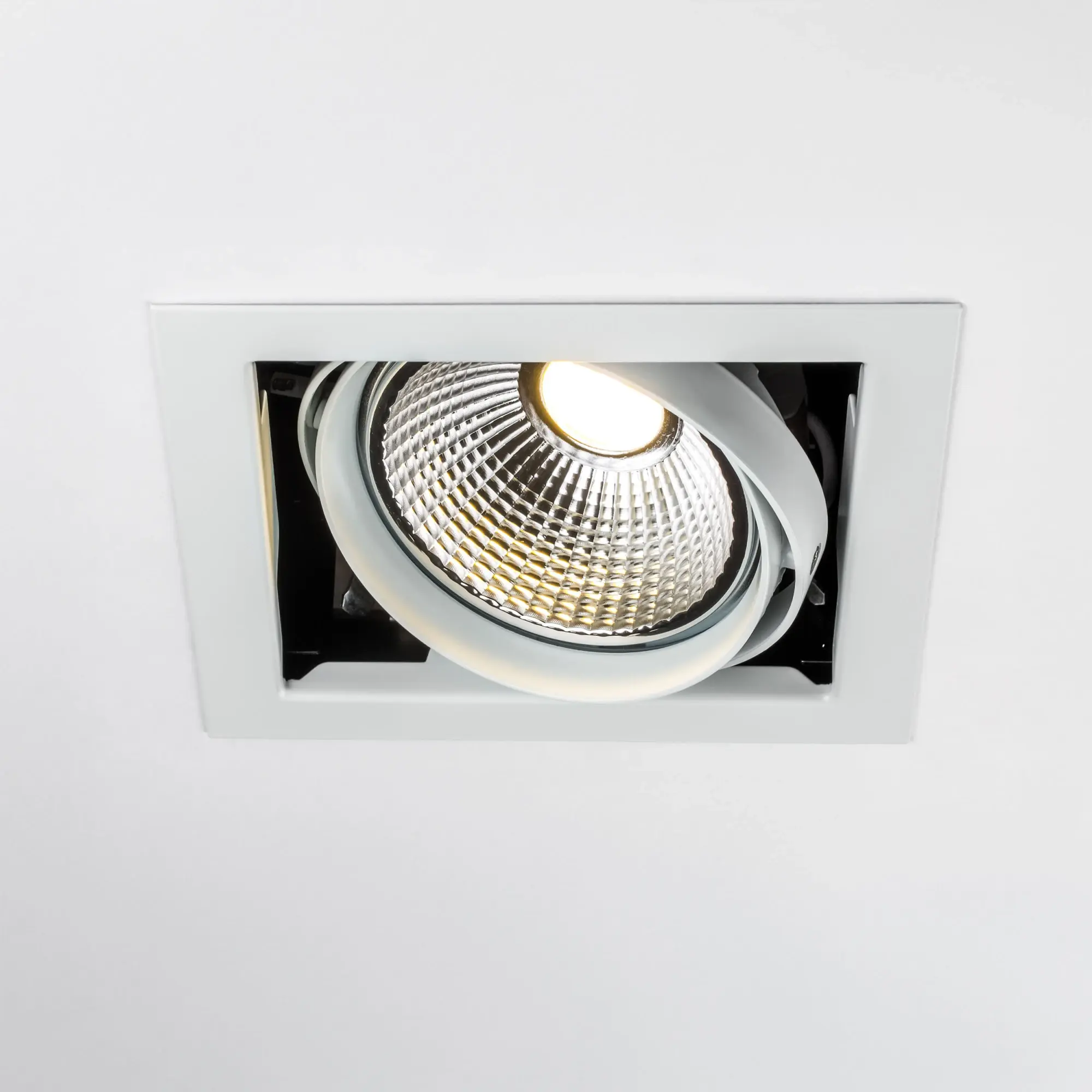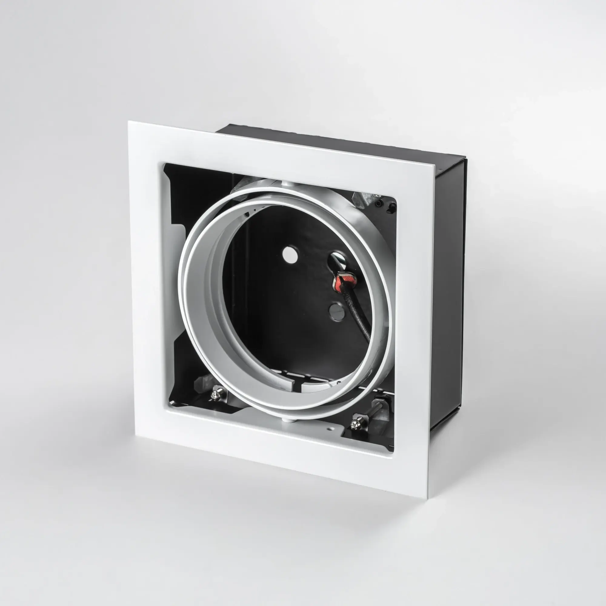 Врезное отверстие: 165x165 h100; Внешние габариты: 185x185 H5; Материал - основание/плафон: металл; Цвет-основание/плафон: белый; Лампа: G53 12 В DR111 max 50 Вт;