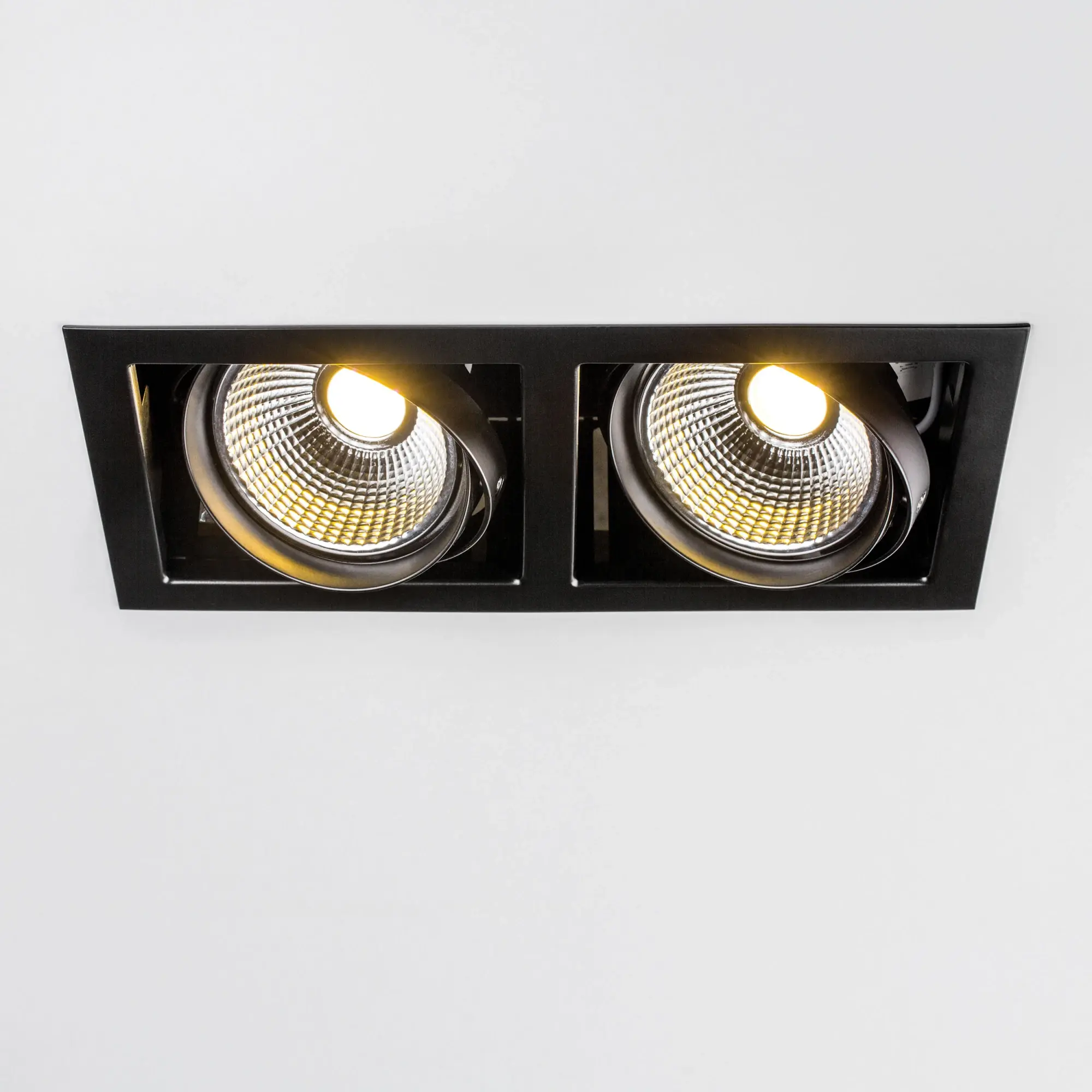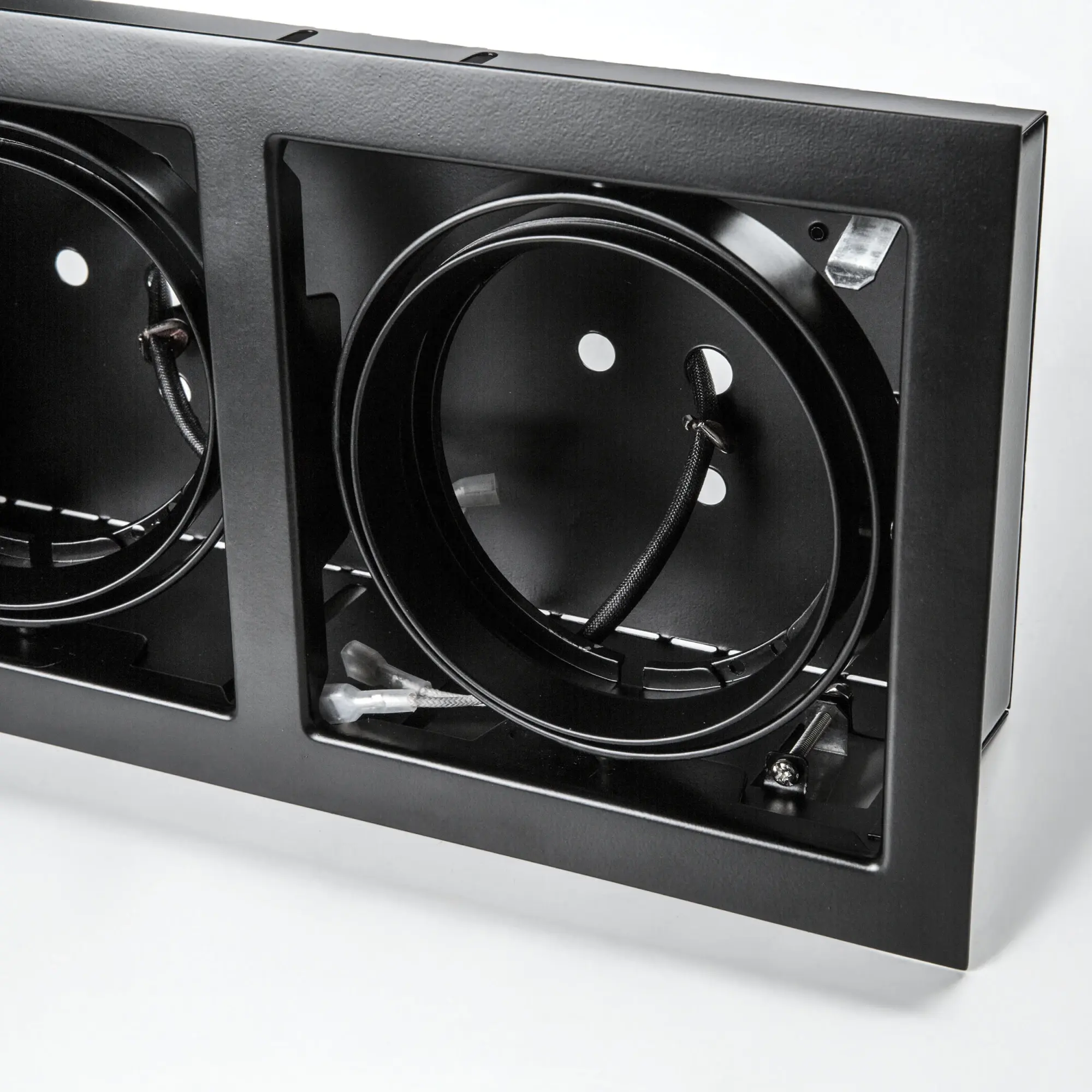 Врезное отверстие: 165x325 h100; Внешние габариты: 185x345 H5; Материал - основание/плафон: металл; Цвет-основание/плафон: черный; Лампа:12 В DR111 max 50 Вт;