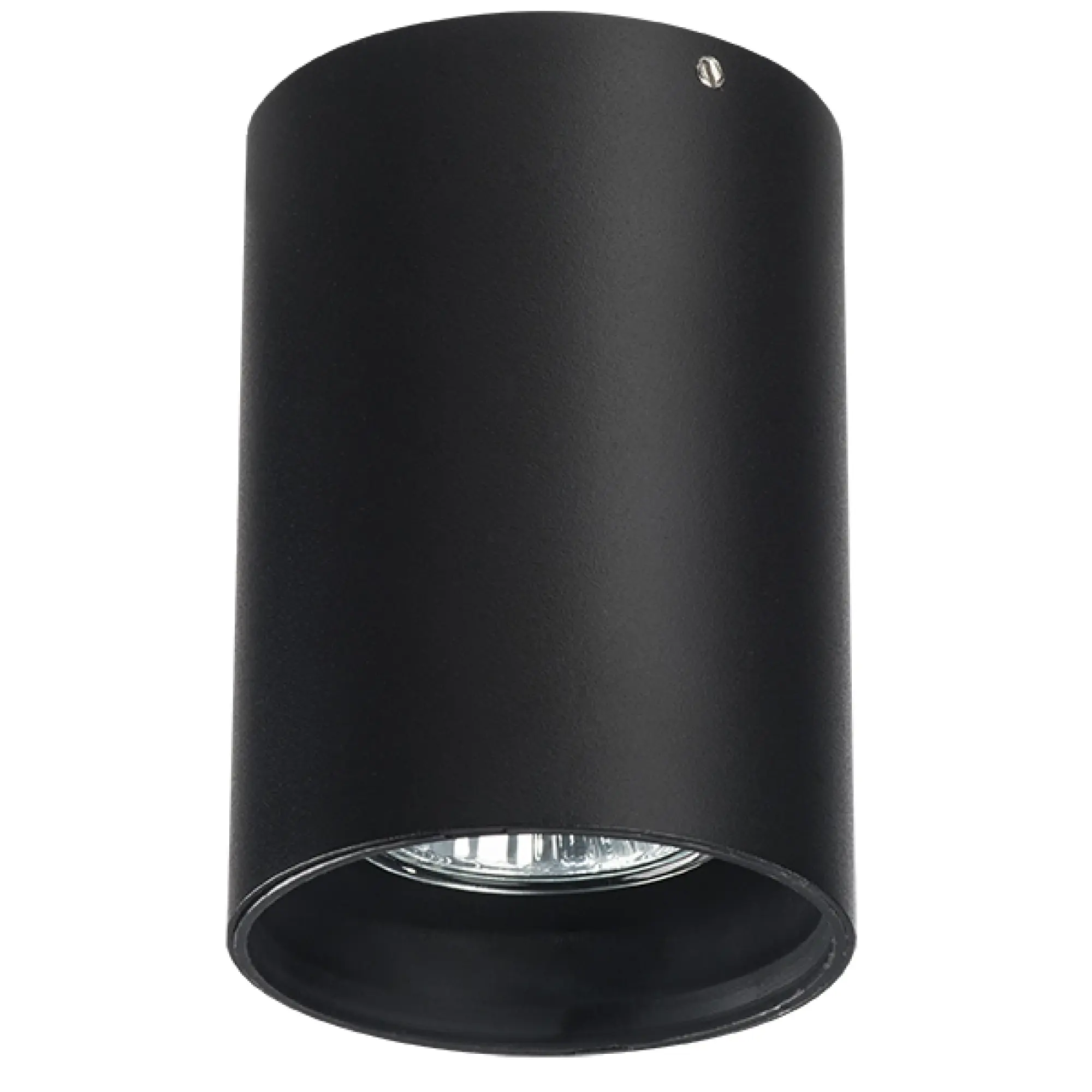 Крепление: d75 a50; Внешние габариты: D75 H112; Материал - основание/плафон: металл; Цвет-основание/плафон: черный; Лампа: GU10/GZ10 max 50 Вт;