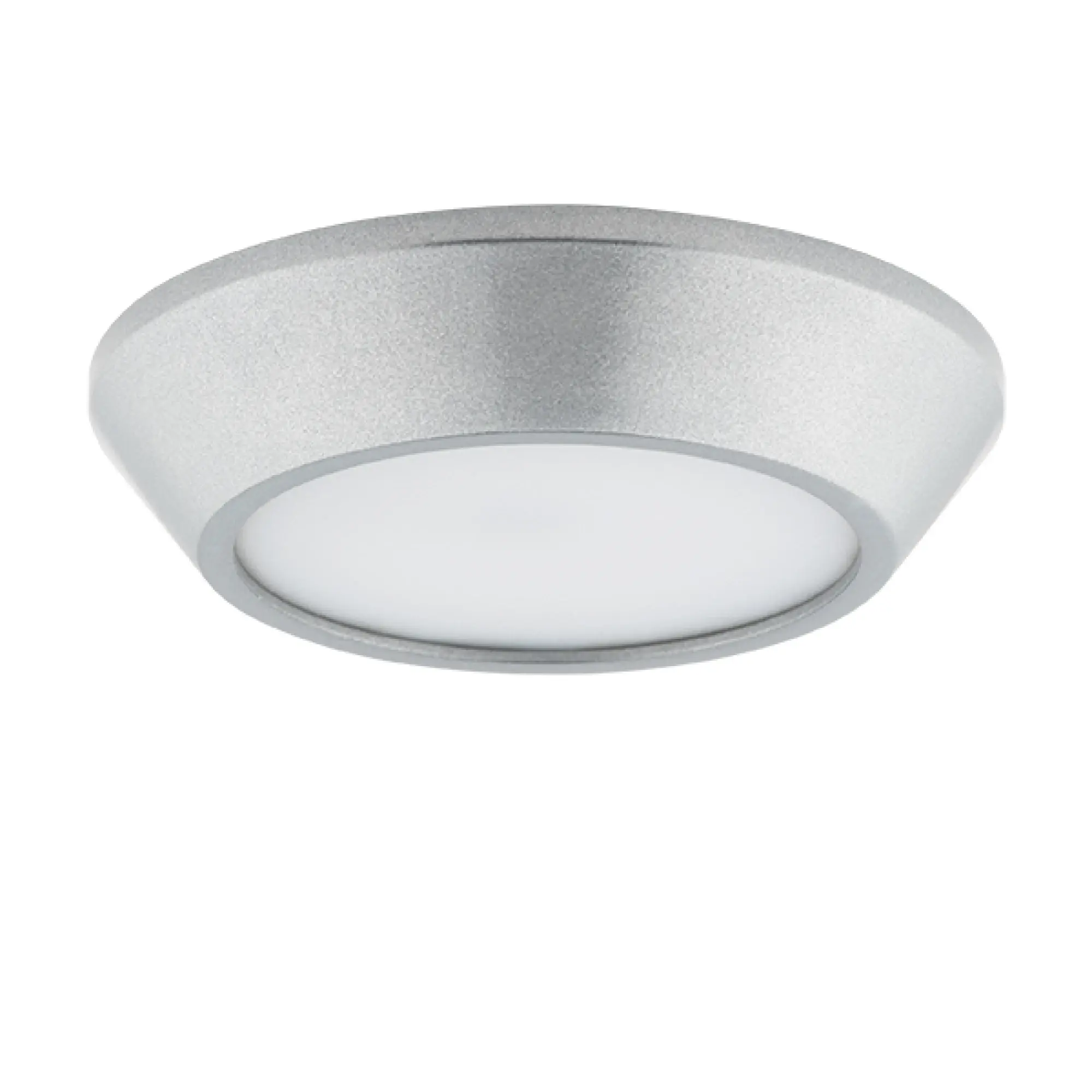 Крепление: a25; Внешние габариты: D125 H25; Материал - основание/плафон: Металл / пластик; Цвет-основание/плафон: хром; Лампа: LED 8 Вт соответствует 80 Вт лампе накаливания, Световой поток: 770LM; Трансформатор встроенный 4000K;