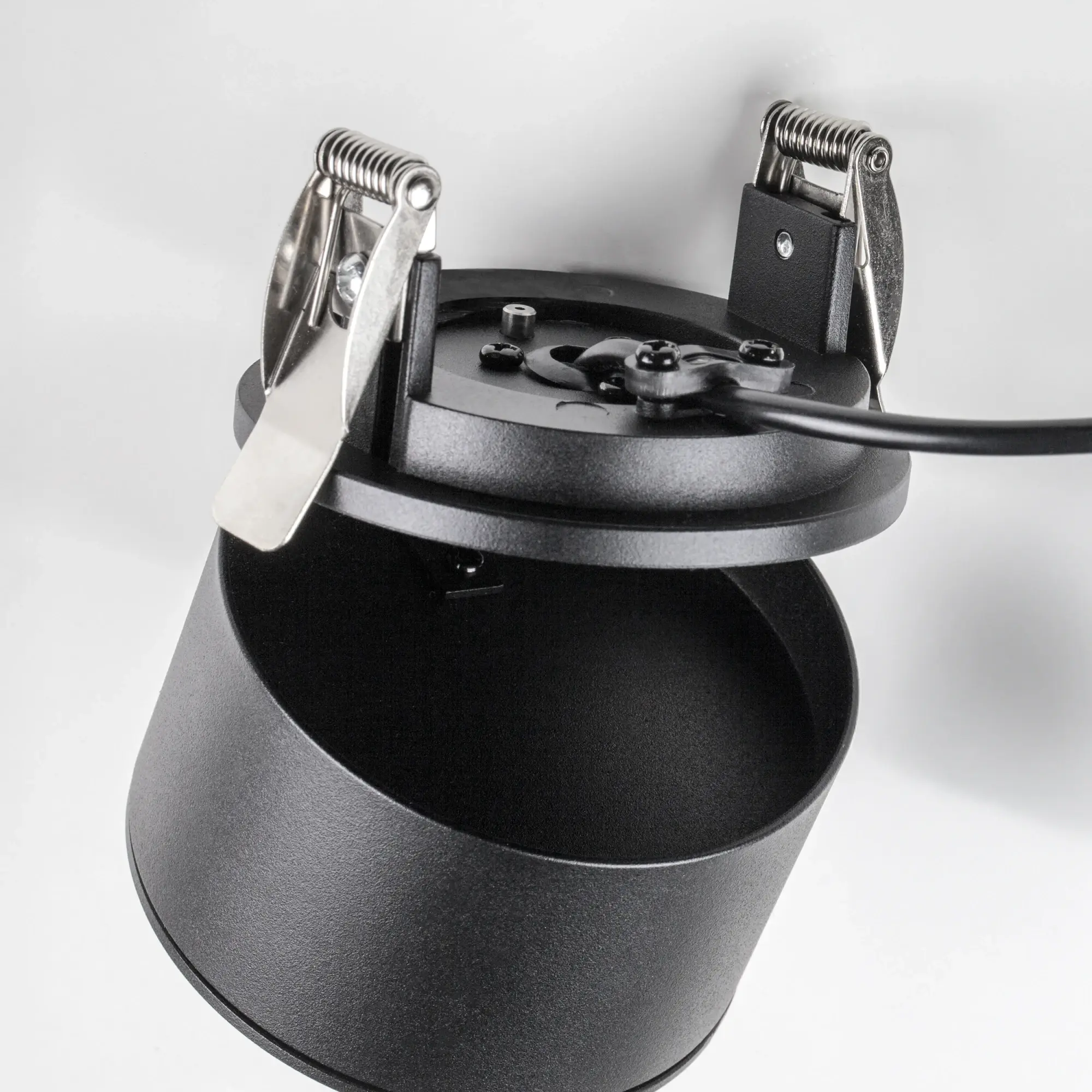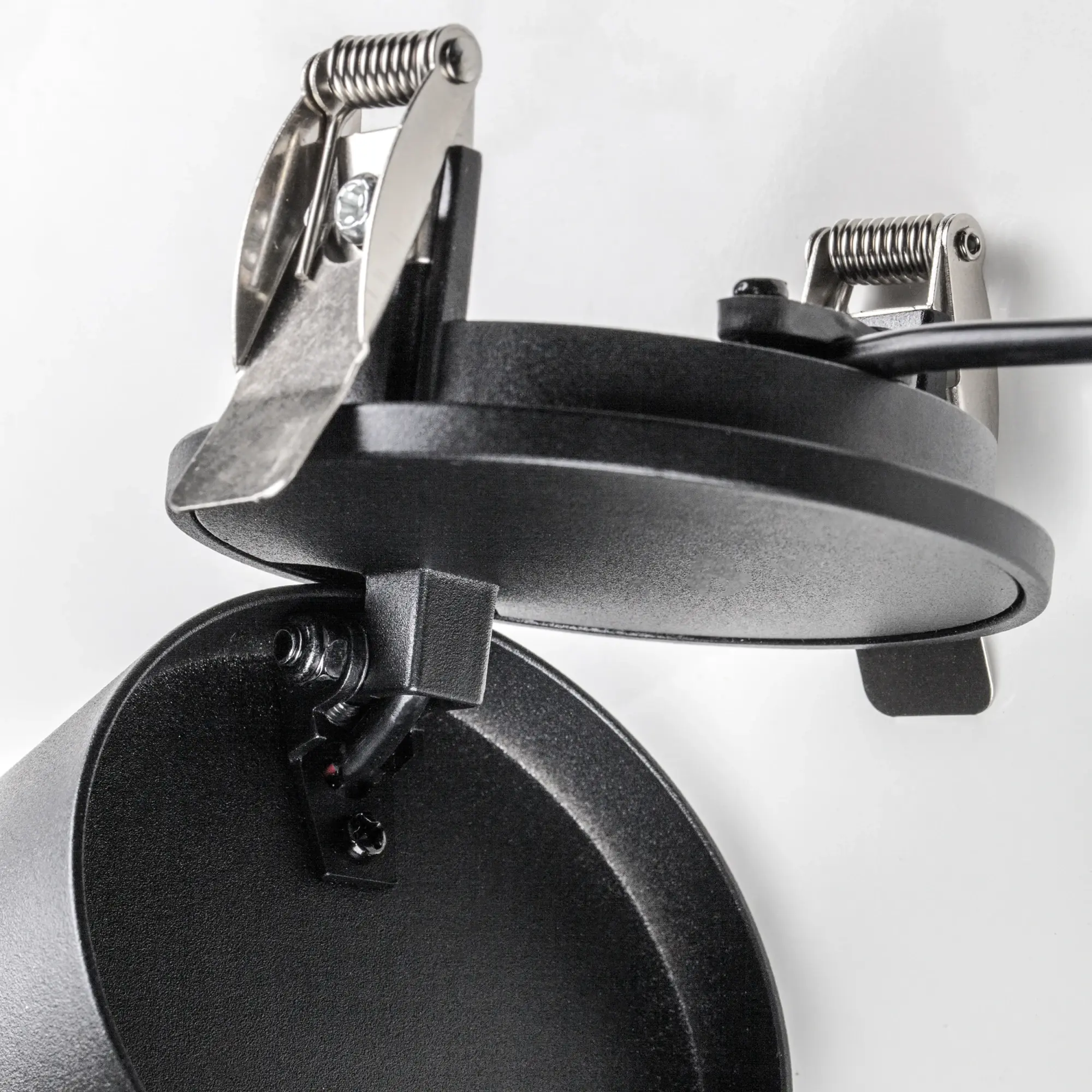 Врезное отверстие: d72 h44; Внешние габариты: D80 H48; Материал - основание/плафон: металл/пластик; Цвет-основание/плафон: черный; Лампа: LED 9W= 90W, Световой поток: 660LM; 3000/4000/6000К; Угол рассеивания: 120G