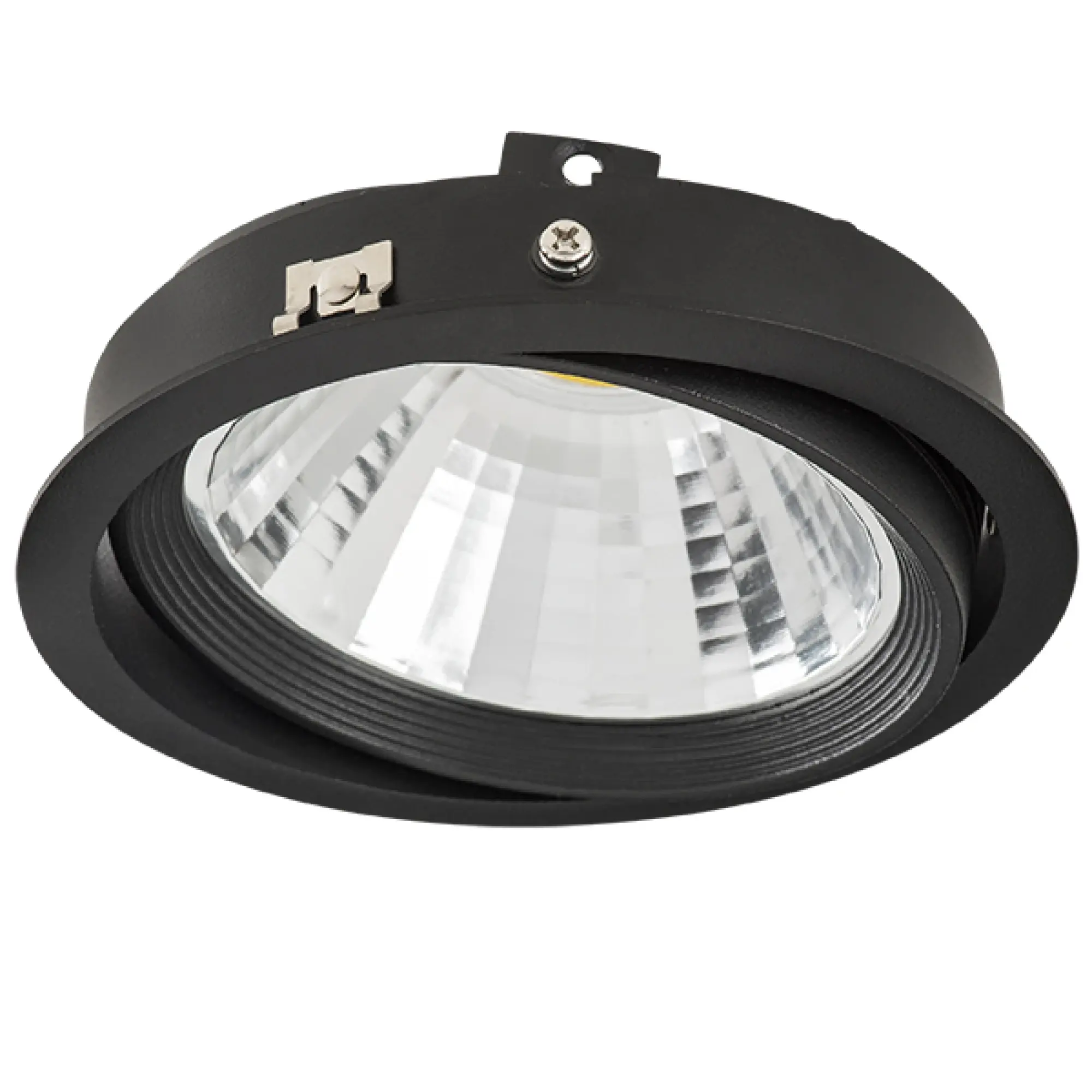 Врезное отверстие: h30 , d130 ; Внешние габариты: D141 H2; Материал - основание/плафон: металл; Цвет-основание/плафон: черный; Лампа: