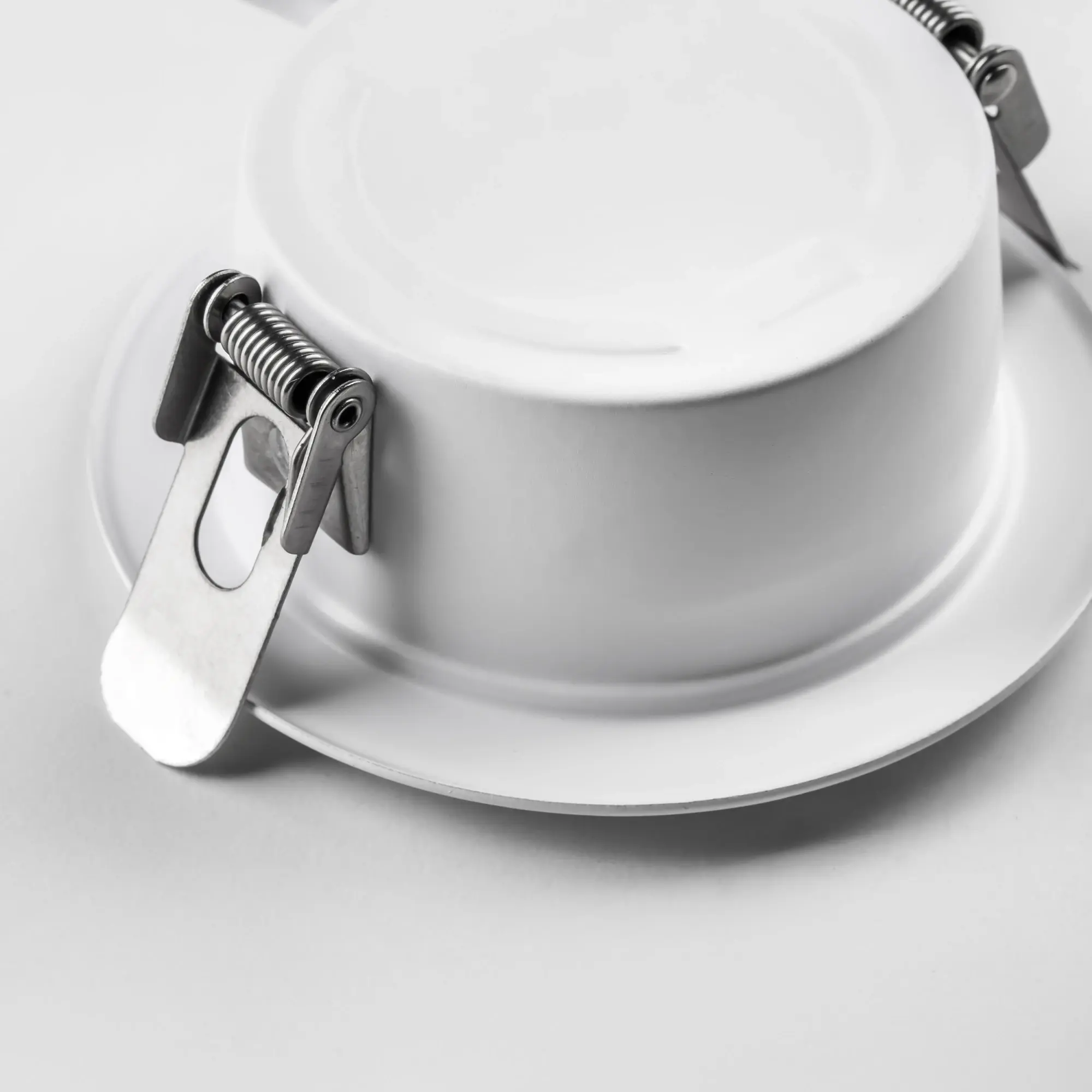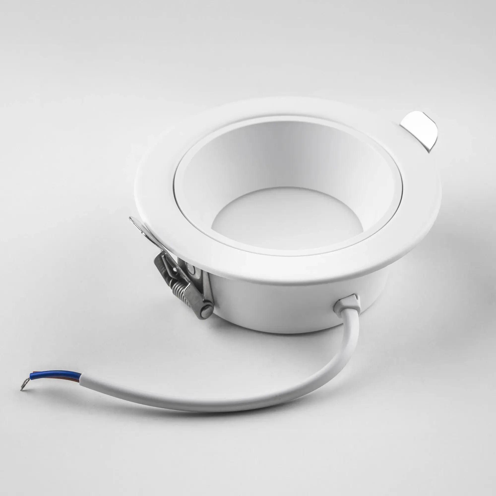 Врезное отверстие: d65 h30; Внешние габариты: D90 H4; Материал - основание/плафон: металл / пластик; Цвет-основание/плафон: белый; Лампа: LED 7 Вт соответствует 70 Вт лампе накаливания, Световой поток: 420LM; Угол рассеивания (G): 120; Трансформатор входит в комплект 3000K;
