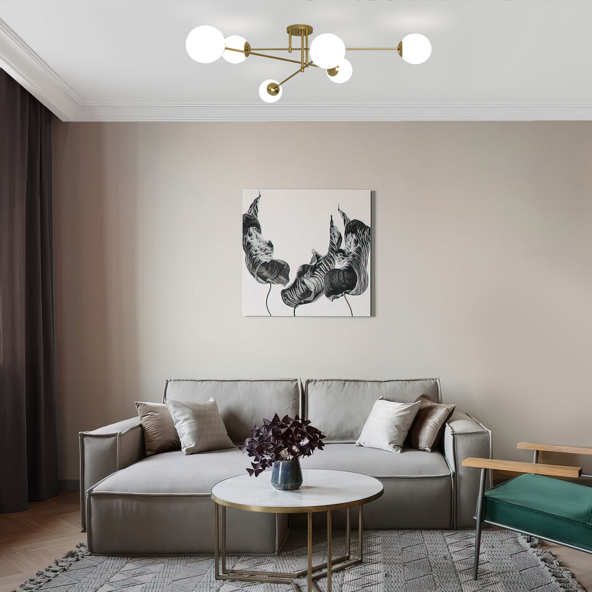 <p>Люстра Netz станет ярким элементом в интерьере, который будет притягивать внимание благодаря своему асимметричному дизайну. Утонченная конструкция объединяет в себе шесть белых сферических плафонов, которые закреплены металлическом каркасе в цвете золота. В модели используются сменные лампы с цоколем E27. Минималистичный стиль потолочного светильника Netz отлично дополнит современный интерьер кухни, гостиной или спальни.</p>
