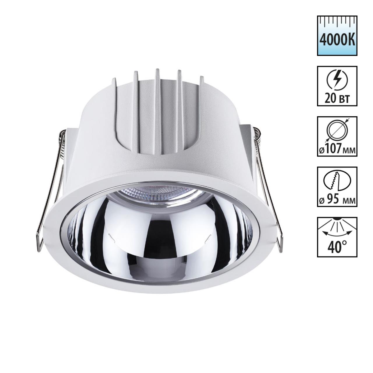 358693 SPOT NT21 462 белый/хром Светильник встраиваемый светодиодный IP20 LED 4000К 20W 100-265V KNOF