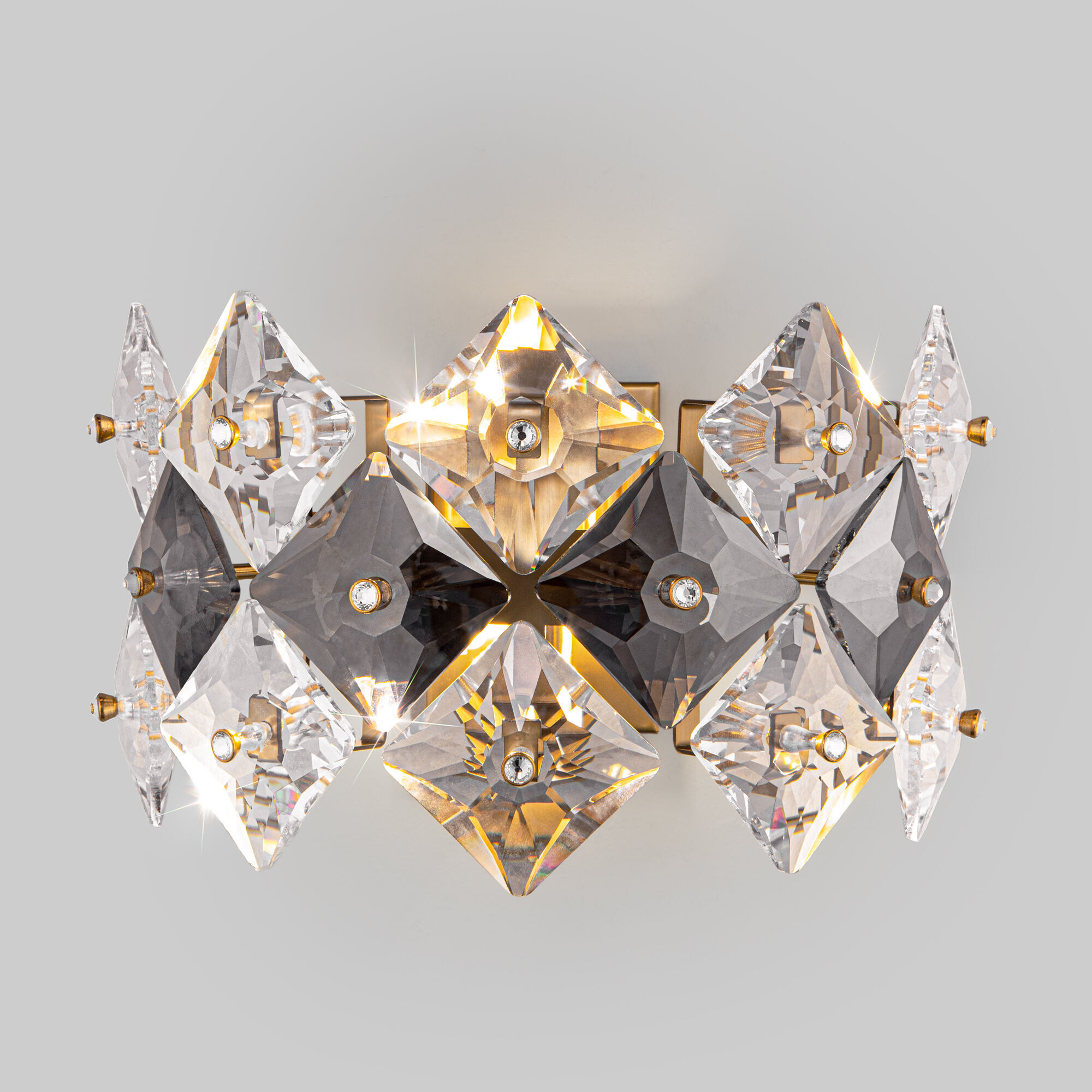 <p>Rubis &mdash; элегантный светильник, наполняющий пространство роскошью. Изысканная арматура цвета латунь усеяна хрусталем Strotskis, который привносит атмосферу торжества и изысканности. Сочетание дымчатого и прозрачного хрусталя строгой геометрической формы добавляет акценты в интерьер. Лучи света, попадая на хрусталики, создают оригинальную игру света и бликов.</p> <p>&nbsp;</p> <ul> <li>В качестве источника света используются сменные лампы с цоколем G9.</li> <li>Коллекция включает в себя подвесную люстру и настенный светильник.</li> </ul>