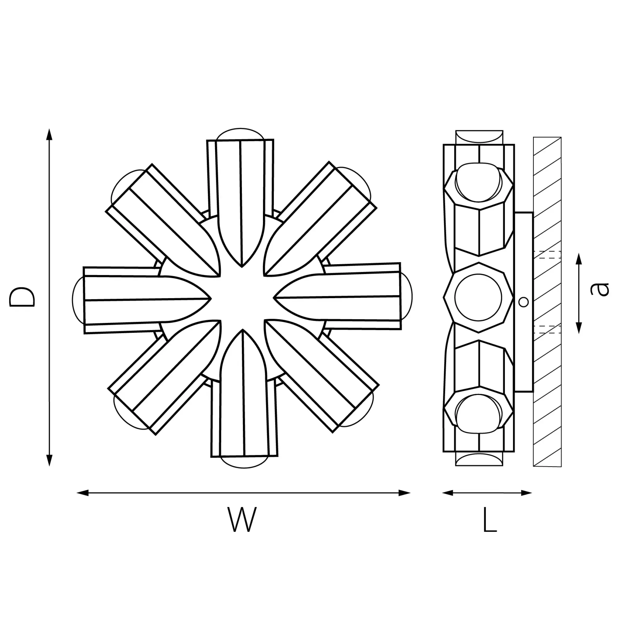 Диаметр (см): 17; Глубина (см): 4,5; Вес (кг): 0,52; Кол-во ламп: LED ; Мощность max (W): 8x1; Световой поток: 880LM; Цвет основания/цвет стекла или абажура: black+gold; 4000K