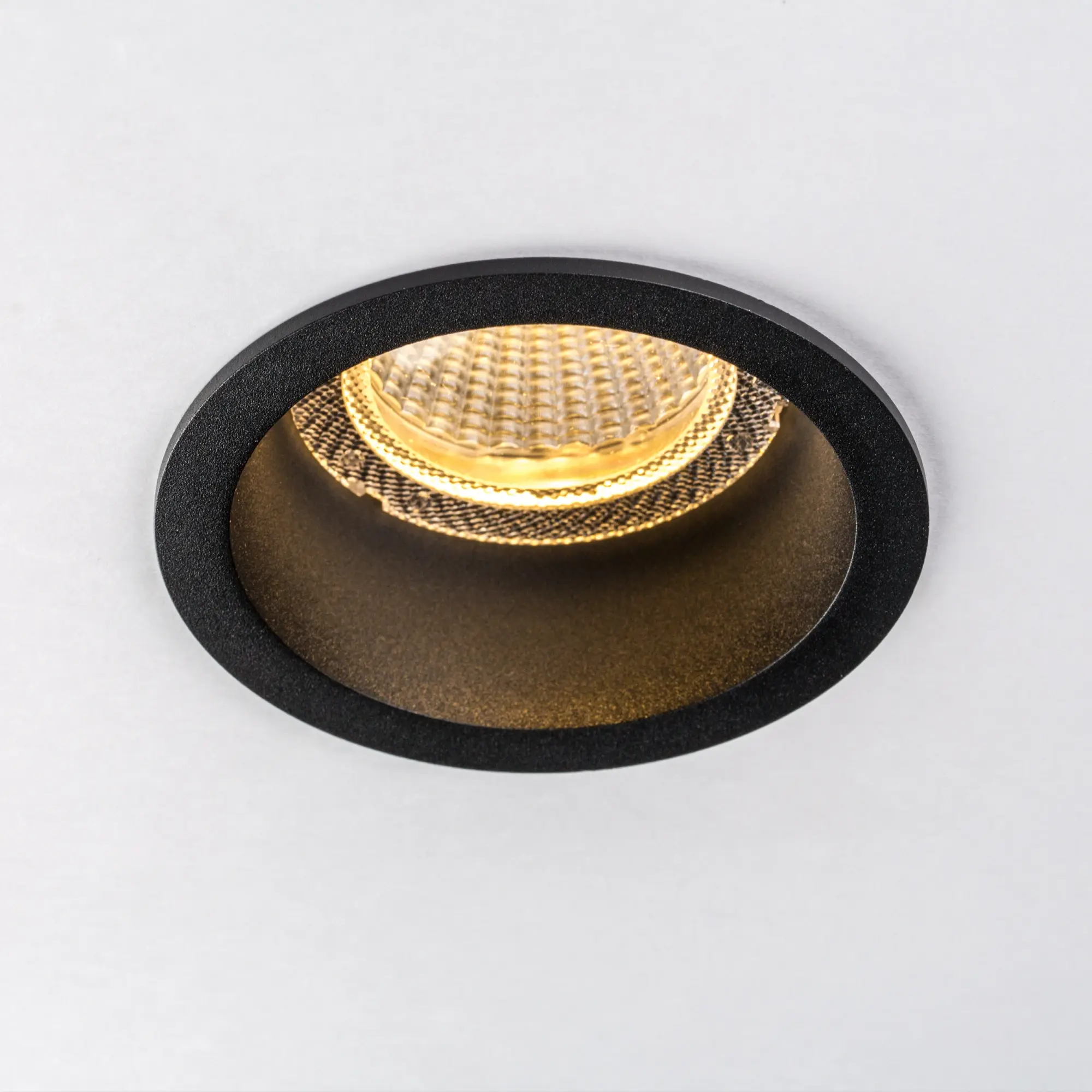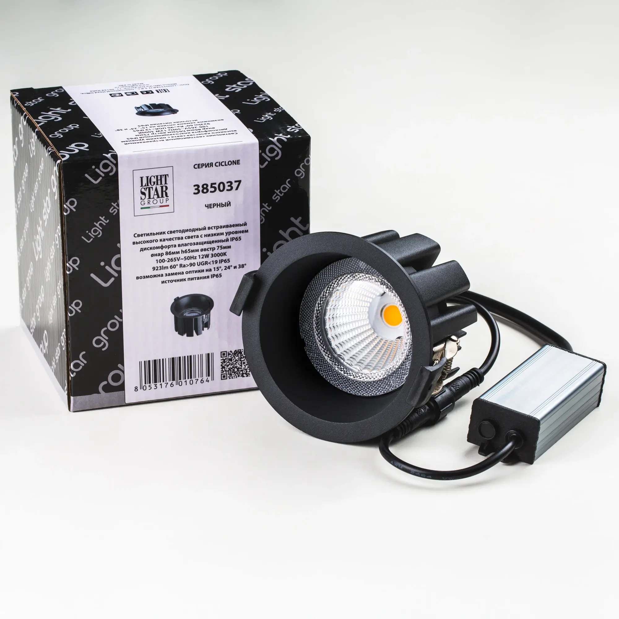 Врезное отверстие: d75 h65 Внешние габариты: D86; Материал - основание/плафон: металл; Цвет-основание/плафон: черный; Лампа: LED 12W= 120W Световой поток: 923LM; 3000К ; Угол рассеивания: 60G;