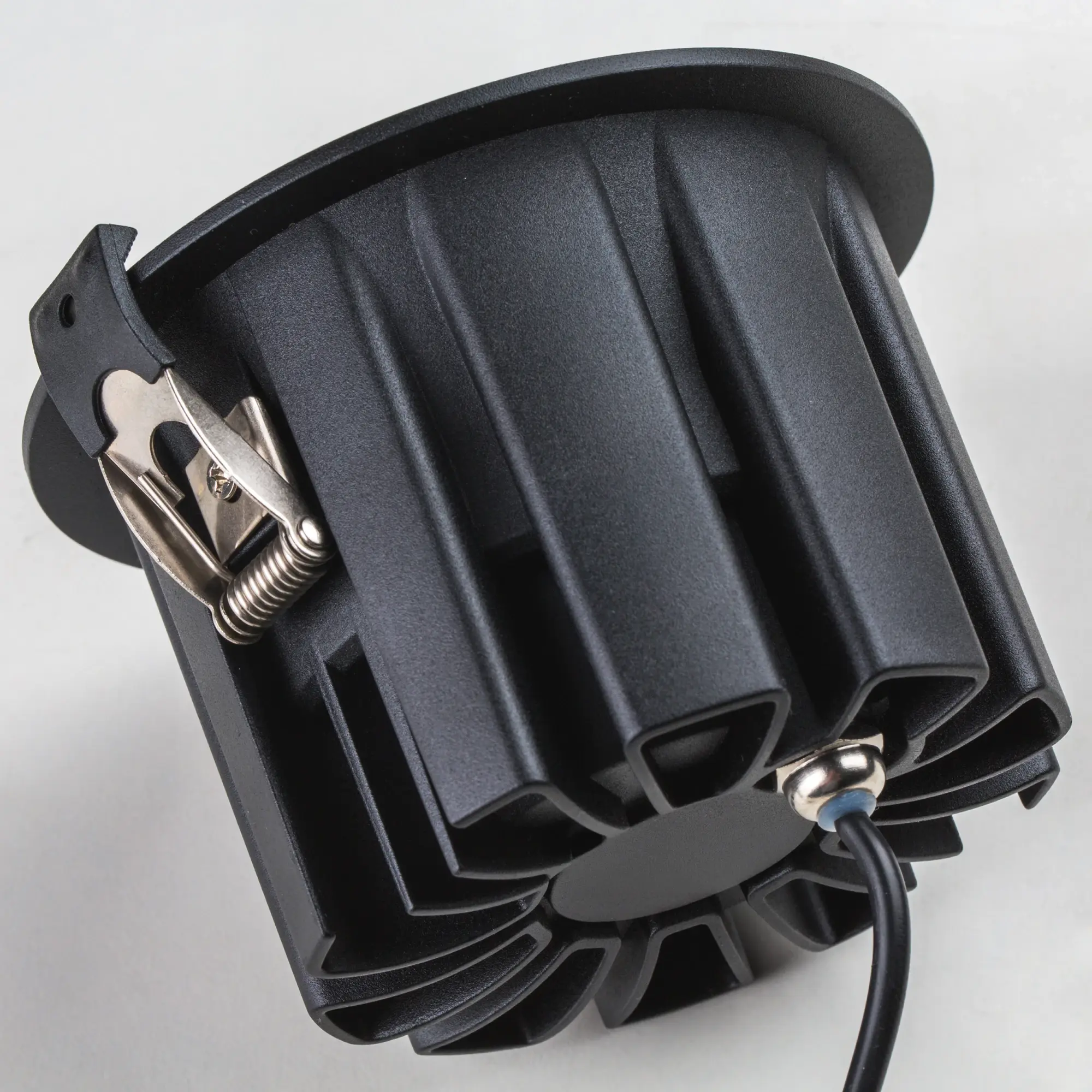 Врезное отверстие: d95 h77 Внешние габариты: D108; Материал - основание/плафон: металл; Цвет-основание/плафон: черный; Лампа: LED 18W= 180W Световой поток: 1456LM; 3000К ; Угол рассеивания: 60G;
