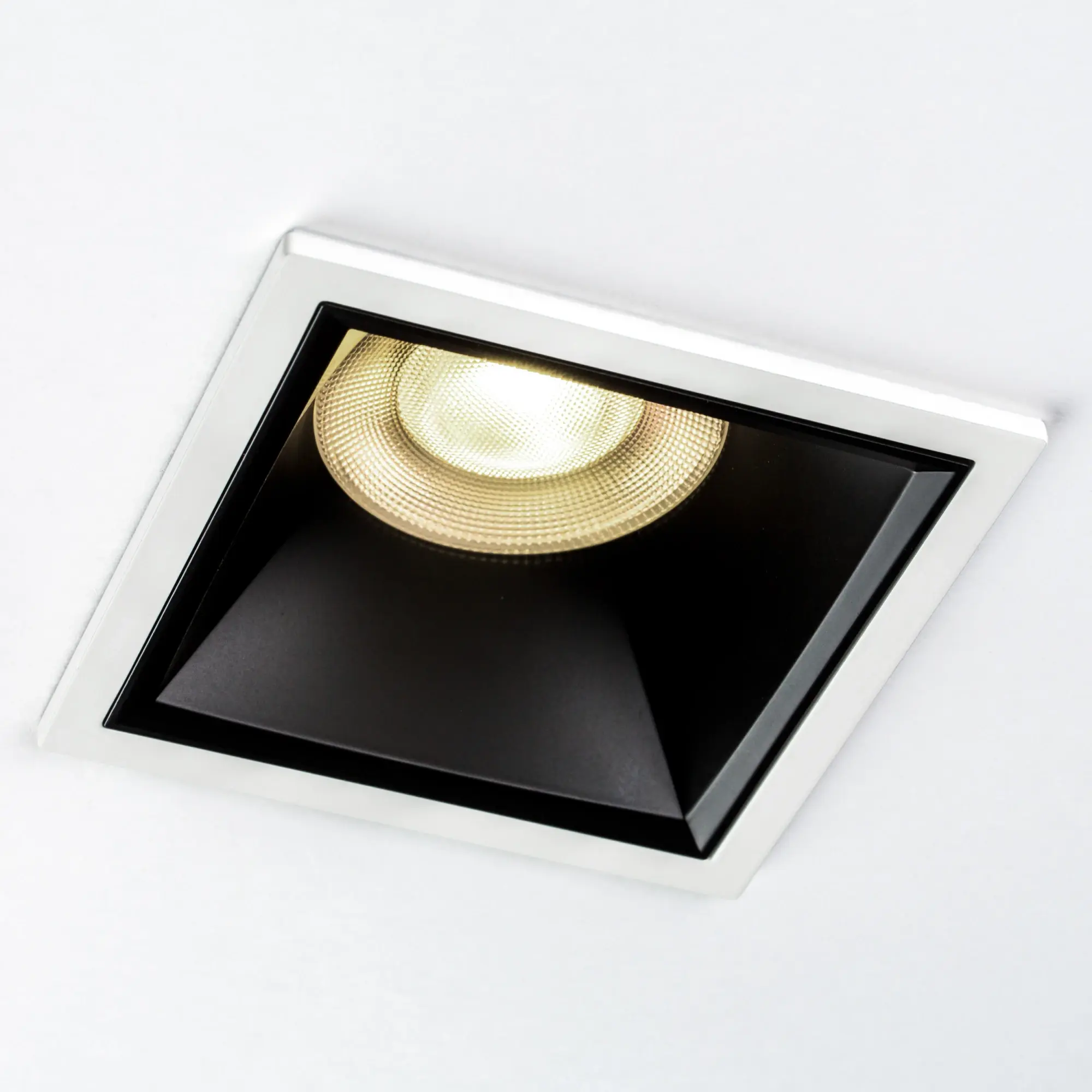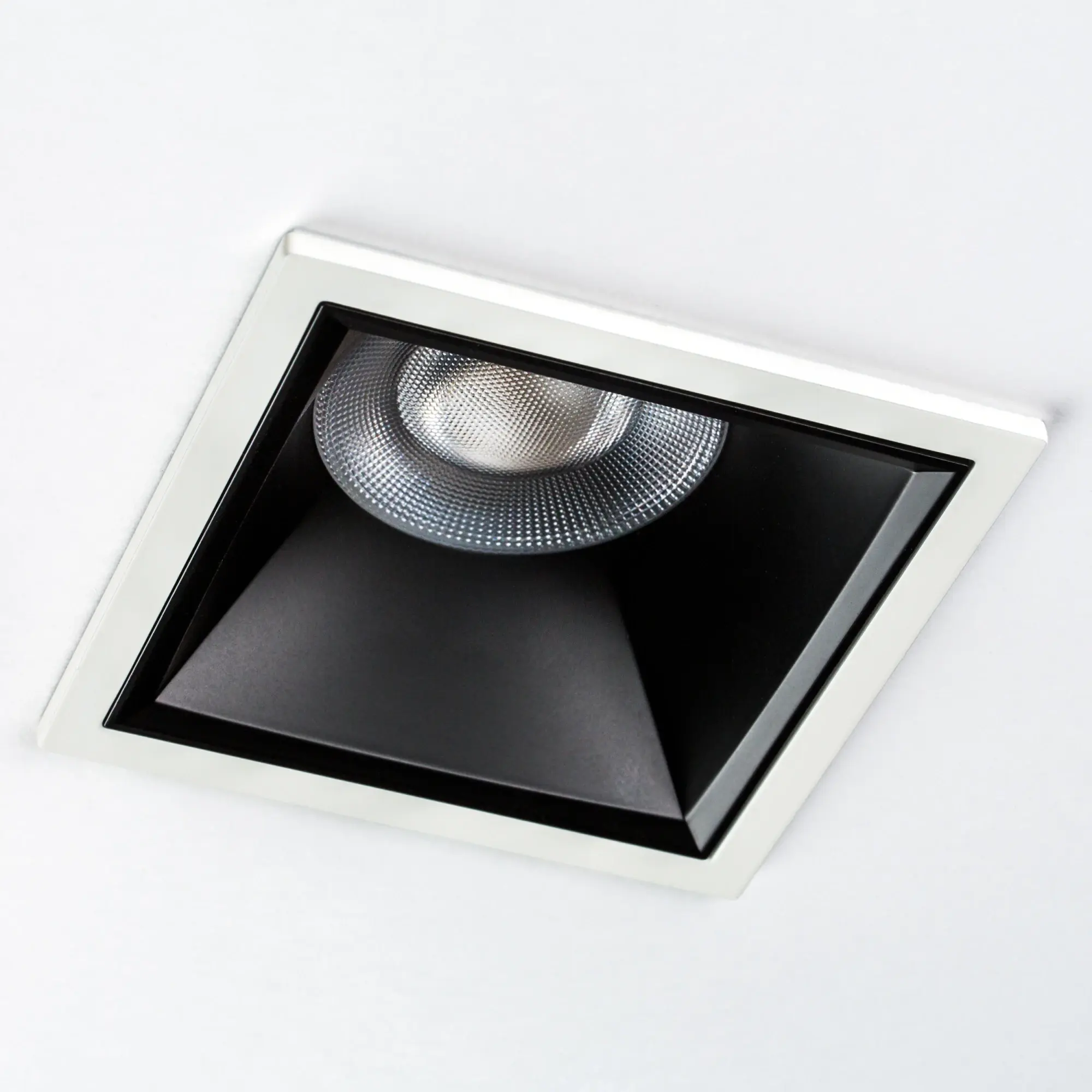 Врезное отверстие: l+w75 h60 Внешние габариты: L+W90; Материал - основание/плафон: металл; Цвет-основание/плафон: белый/черный; Лампа: LED 12W= 120W Световой поток: 1868LM; 4000К ; Угол рассеивания: 60G;