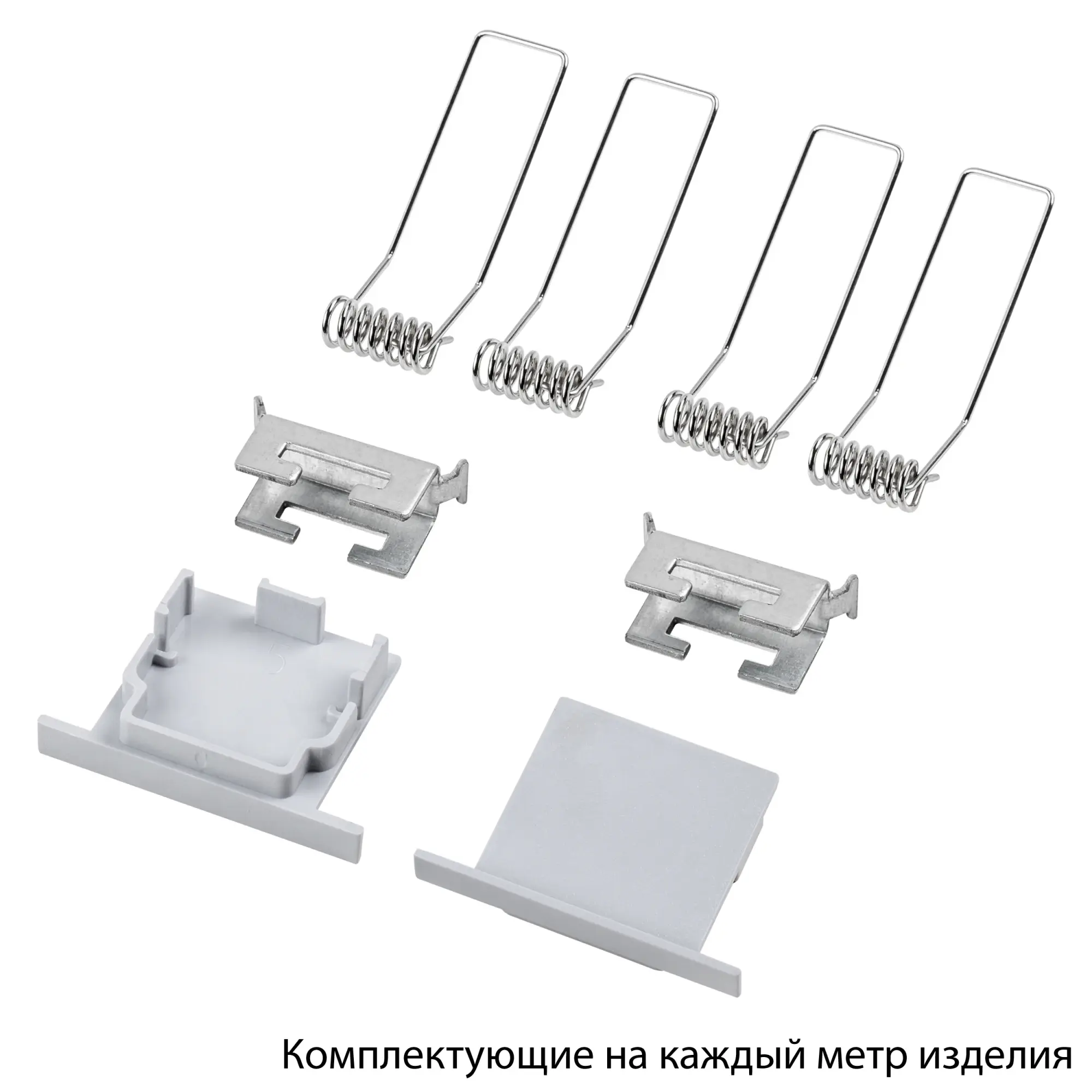 Длина (м): 2; Ширина (мм): 50,4; Высота (мм): 35; Материал: металл/пластик; Особенности: для LED-ленты шириной до 26,6 мм; Комплектация 1 шт. (2м): Профиль (2 метра); Экран (плафон) - 2 метра; Концевые заглушки - 4 шт; Клипсы - 4 шт; Пружины - 8 шт.