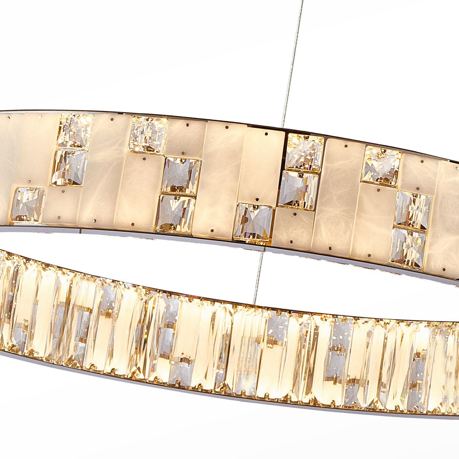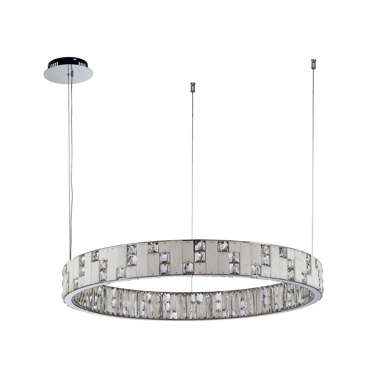 подвесная люстра, каркас цвета хром, декор из матового рельефного стекла цвета шампанского по Муранской технологии, вставки из хрусталя в коньячном цвете, высоту можно регулировать