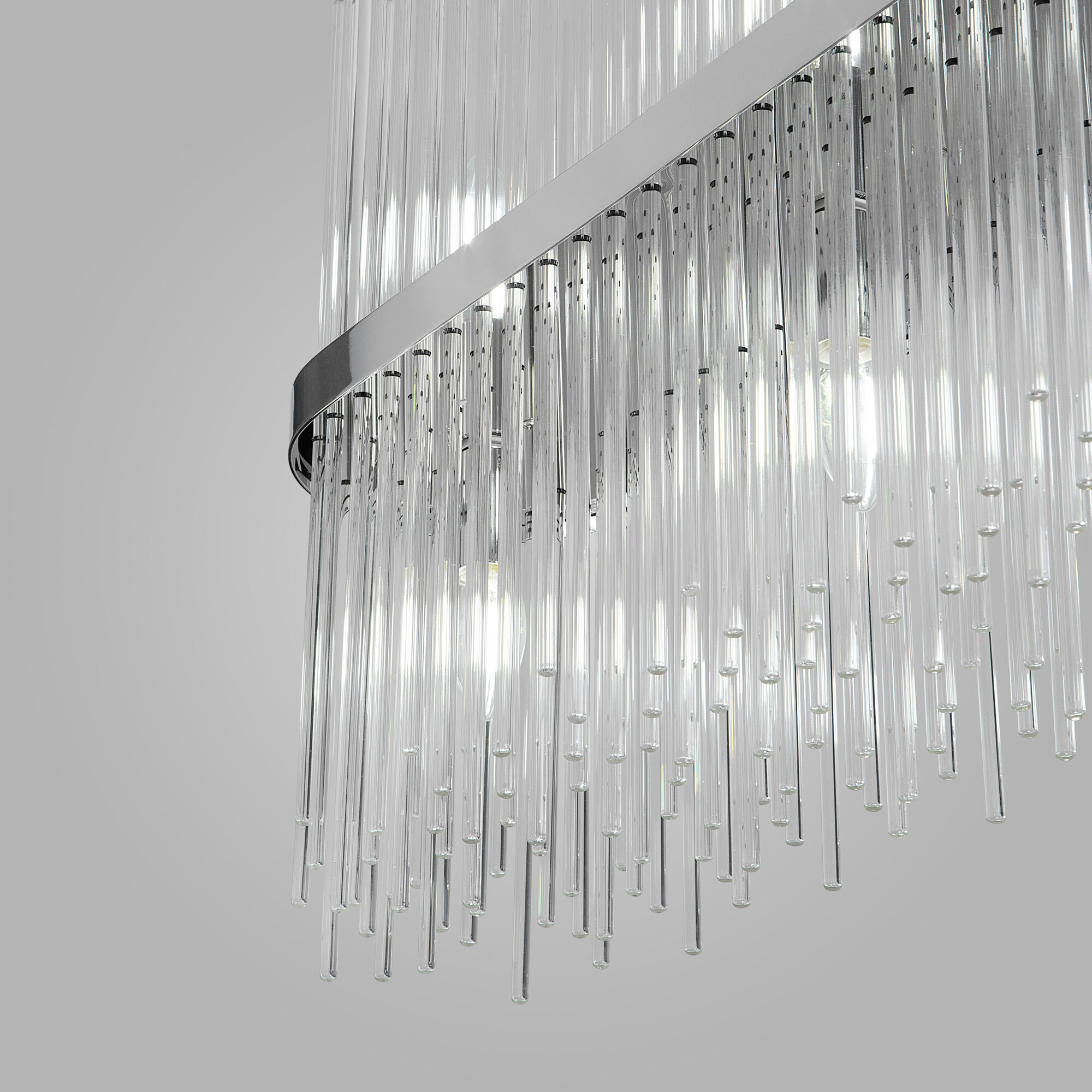 <p>Выразительная люстра Bogate's на 10 рожков в цвете латунь преобразит потолочное пространство и создаст в вашем помещении полноценное освещение на площади 18 м кв.</p> <p>Декоративные стеклянные трубочки и сменные лампы с цоколем E14 переливаются на свету искристыми завораживающими бликами. В производстве подвесной люстры использовали особое стекло с эффектной огранкой и высококачественный металл с надежным защитным покрытием.</p>