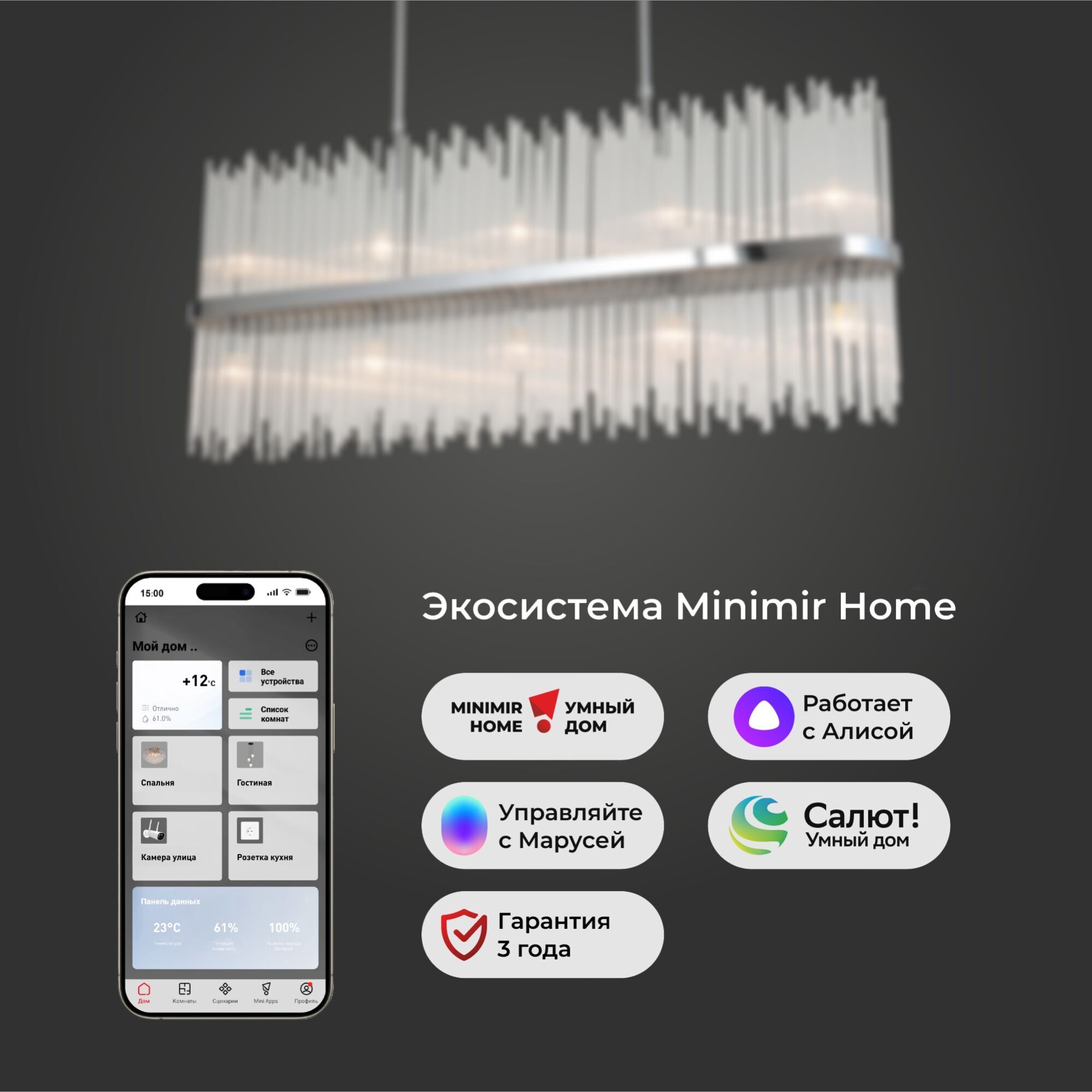 Умная подвесная люстра со стеклянным рассеивателем 485/10