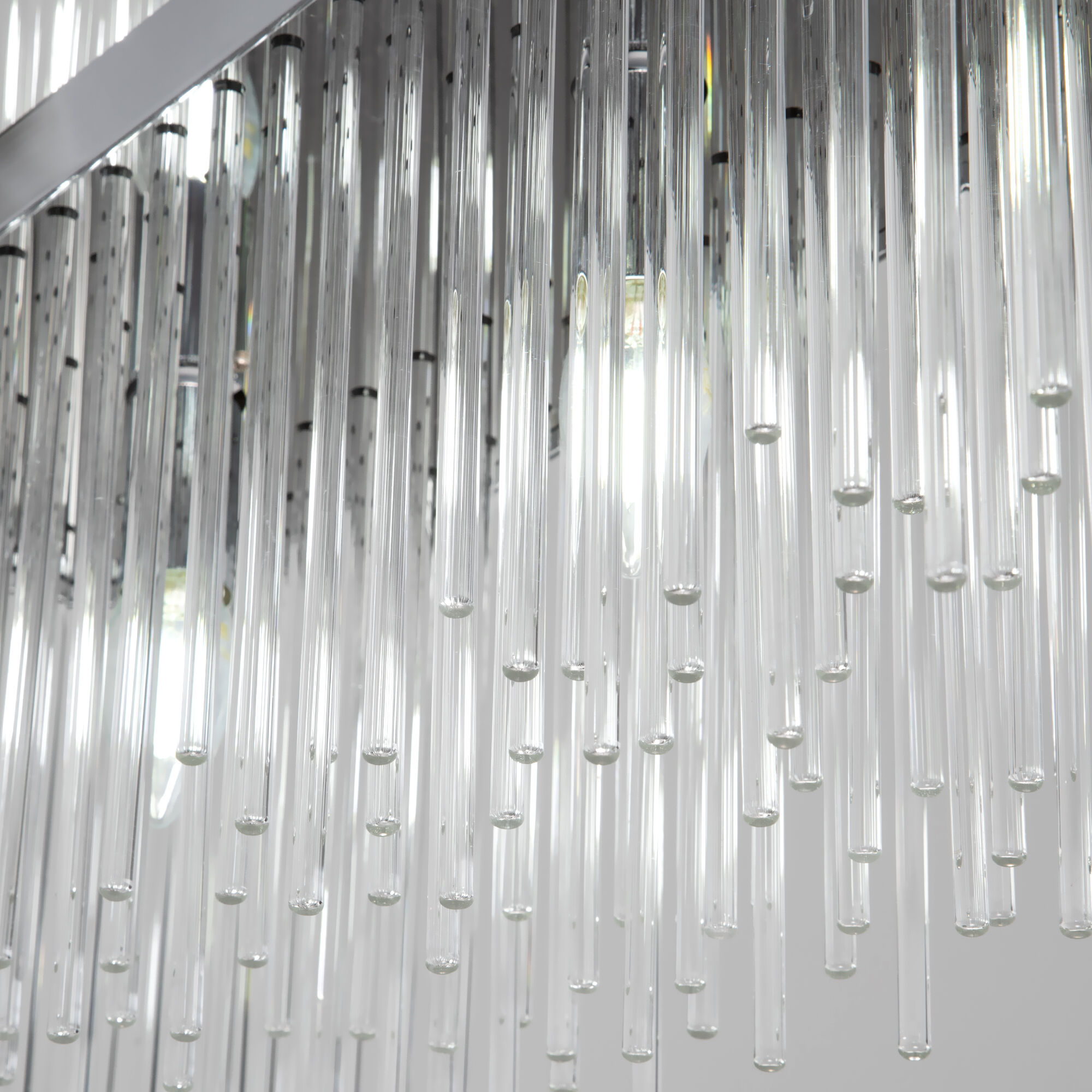 <p>Выразительная люстра Bogate's на 8 рожков в цвете латунь преобразит потолочное пространство и создаст в вашем помещении полноценное освещение на площади 14 м кв.</p> <p>Декоративные стеклянные трубочки и сменные лампы с цоколем E14 переливаются на свету искристыми завораживающими бликами. В производстве подвесной люстры использовали особое стекло с эффектной огранкой и высококачественный металл с надежным защитным покрытием.</p>