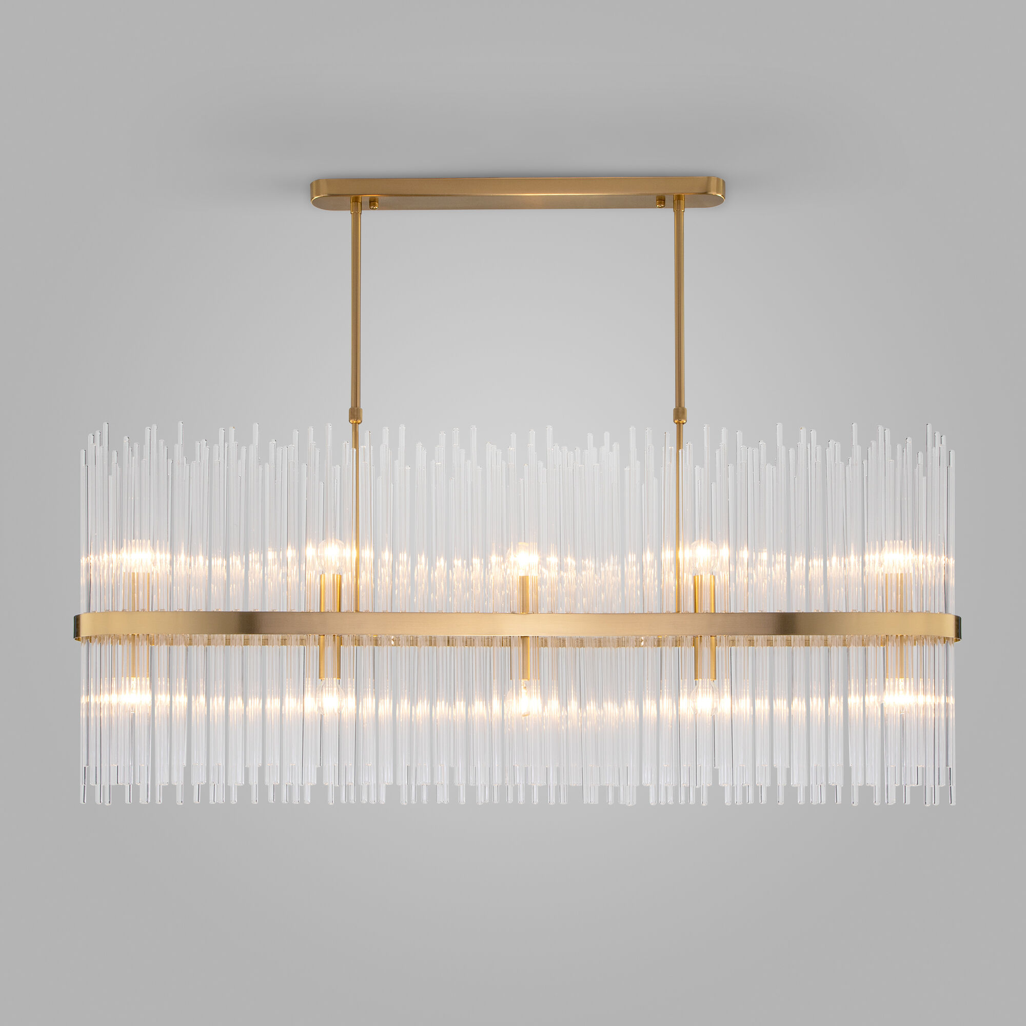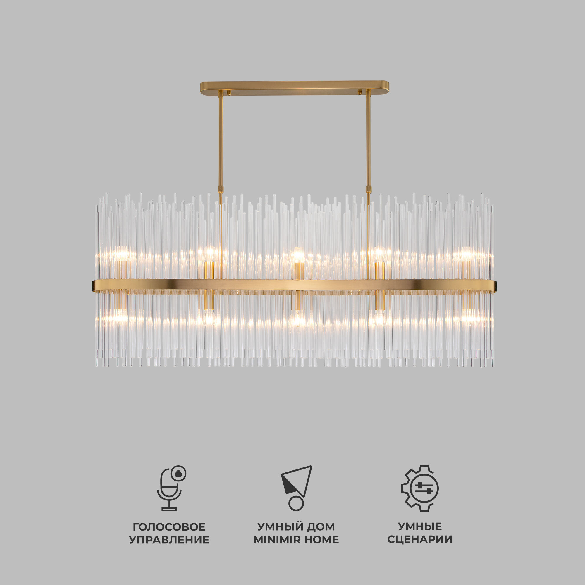 <p>Выразительная люстра Bogate's на 10 рожков в цвете латунь преобразит потолочное пространство и создаст в вашем помещении полноценное освещение на площади 18 м кв.</p> <p>Декоративные стеклянные трубочки и сменные лампы с цоколем E14 переливаются на свету искристыми завораживающими бликами. В производстве подвесной люстры использовали особое стекло с эффектной огранкой и высококачественный металл с надежным защитным покрытием.</p>