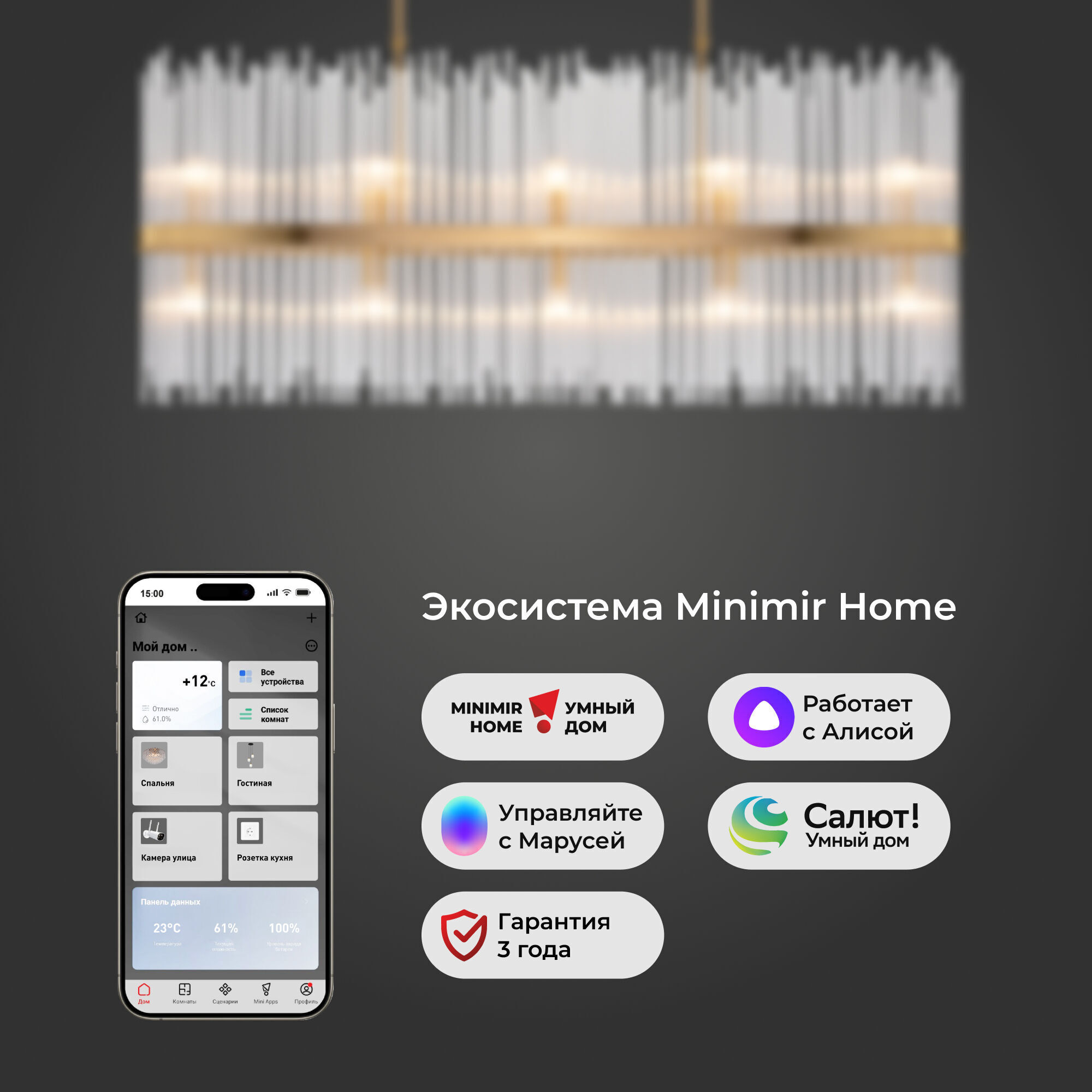 Умная подвесная люстра со стеклянным рассеивателем 486/10