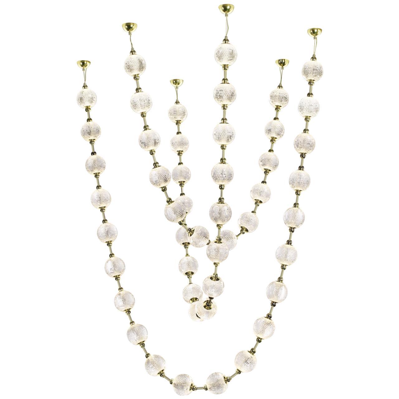 Великолепная светодиодная линия Crystal поражает изяществом, лаконичностью и многообразием модельного ряда. Люстра в виде множества свисающих бус, которые создают красивый ансамбль, предназначенная для помещений с высокими потолками, лестничных пролетов в коттеджах и залов со вторым светом, прекрасно украсит интерьер в различных стилях от неоклассики до хай-тека. Множество акриловых шариков, имитирующих хрустальную резную фактуру, создадут непередаваемую игру света и переливов. Модель предназначена для установки в подвесной потолок или потолок из гипсокартона. Драйвер устанавливается «за потолком» на расстоянии не более 1,5 м от люстры.