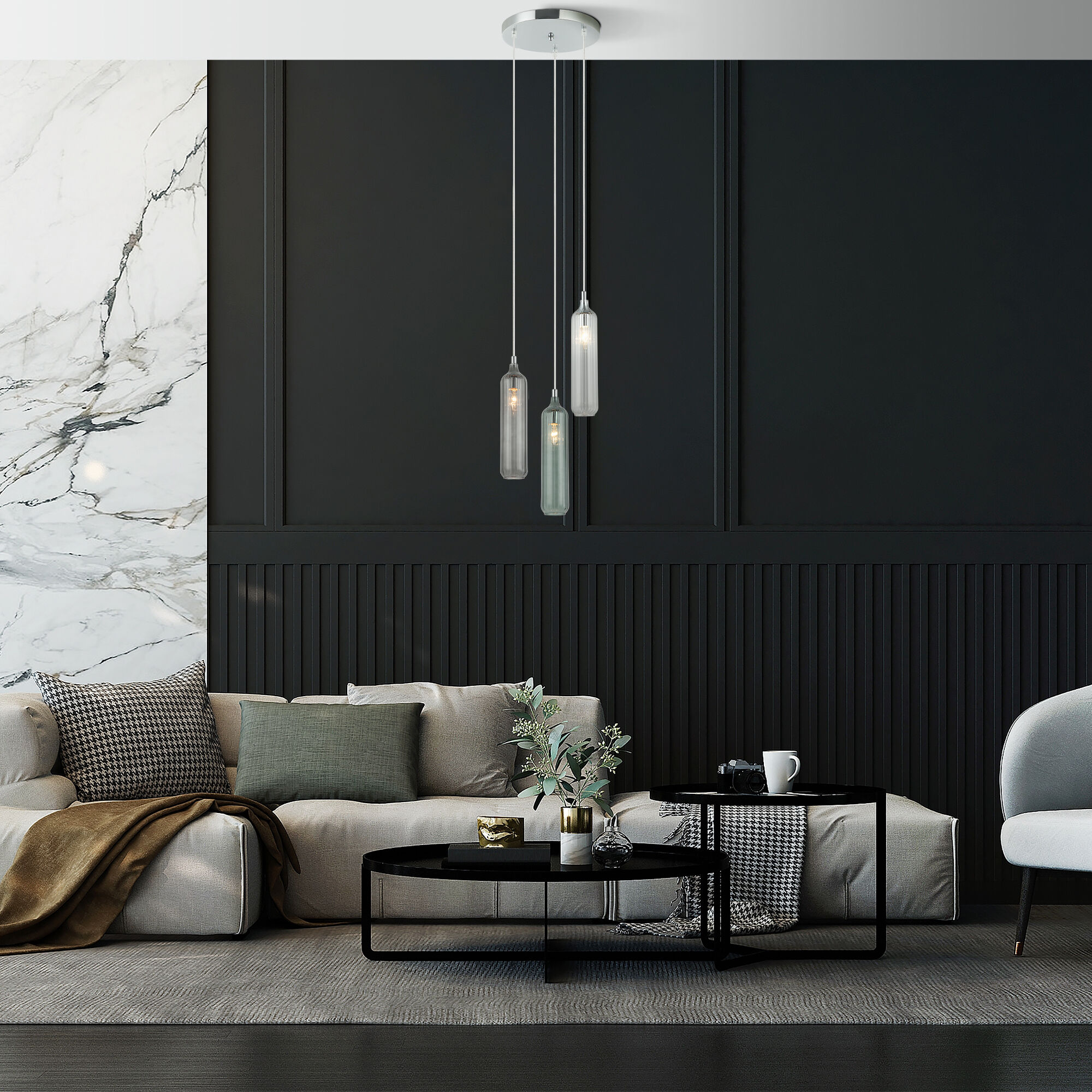 <p><strong>Подвесной светильник Siesta</strong> прекрасно подойдет для создания уютной атмосферы. Вытянутые стеклянные плафоны с рифленой фактурой выполнены в трендовых цветах природных оттенков.</p> <ul> <li>Светильники Siesta представлены в зеленом, синем и дымчатом, прозрачном и белом матовом цветах.</li> <li>Готовая комбинация из трех световых элементов</li> <li>Высота подвеса регулируется</li> </ul>