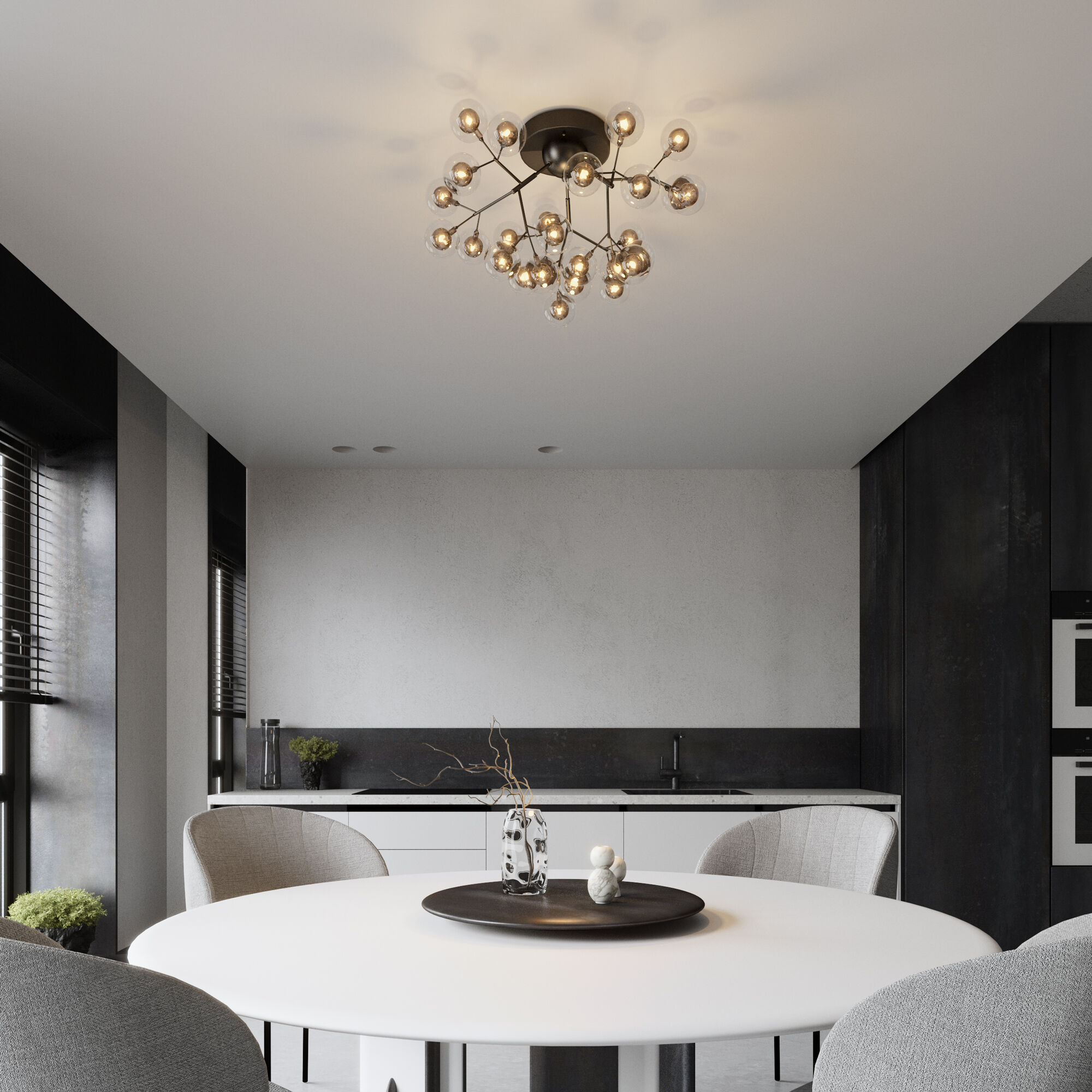<p>Потолочный светильник 544 в черном цвете предназначена для создания основного освещения в современных и классических интерьерах. Подходит для различных типов помещений: гостиная, загородный дом и рассчитана на площадь освещения 18 м&sup2;.</p> <p>Дизайнерская люстра имеет 27 рожков и оснащена патронами с цоколем G4, которые рассчитаны на максимальную мощность ламп 3 Вт. Люстра украшена эффектными стеклянными плафонами в форме лепестков в дымчатом цвете. Арматура изготовлена из высококачественного металла с надежным защитным покрытием.</p>