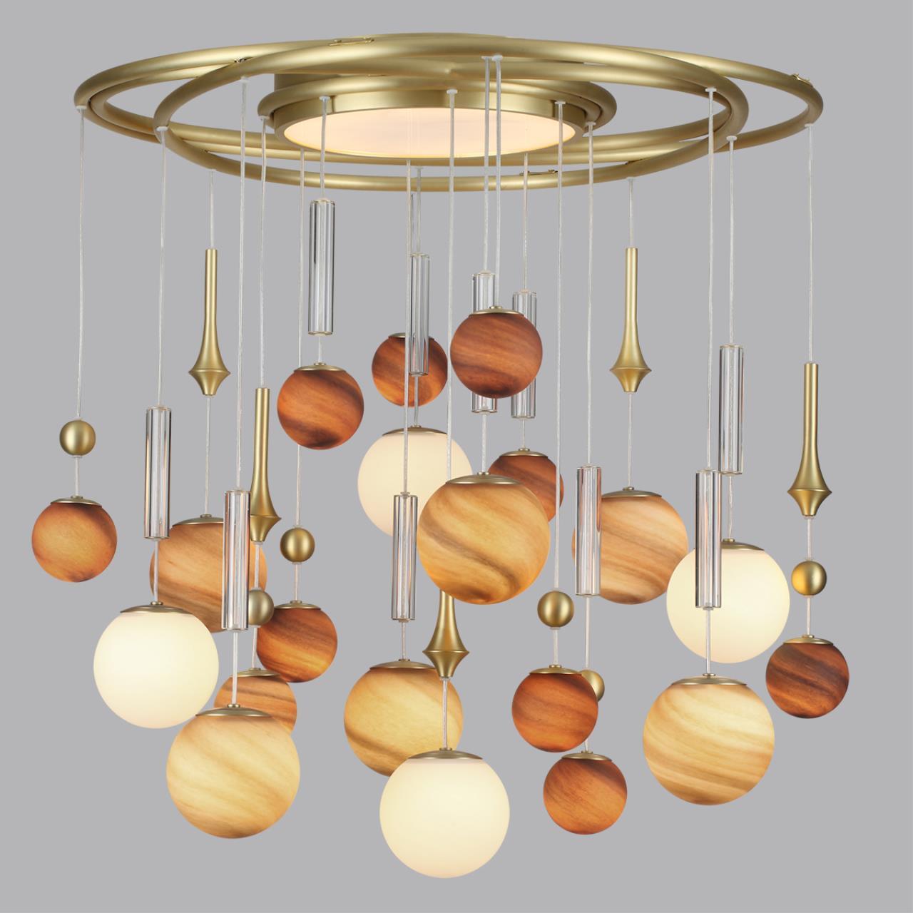 Линия светильников Callisto названа в честь второго по размеру спутника Юпитера ― Каллисто, одного из четырех галилеевых спутников. Стеклянные плафоны похожие на планеты выполнены из матового стекла ручной работы. Трендовые оттенки коричневого красиво дополнены металлом в цвете светлая сатинированная латунь. Люстра имеет два источника света: LED в центре композиции словно солнце в параде планет и плафоны со сменной светодиодной лампочкой с цоколем G9.