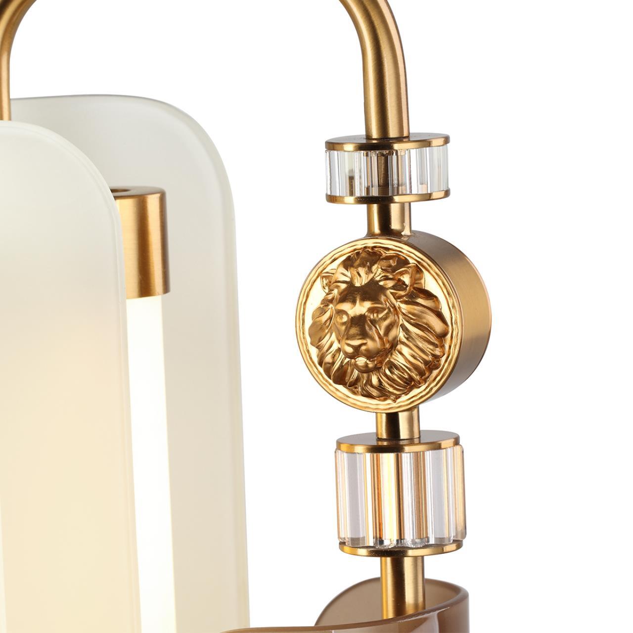 5467/10TL MODERN ODL_EX26 белый/коричневый/античная бронза/металл/стекло/декор металл Настольная лампа LED x 10W (5W*2) 3000K LION