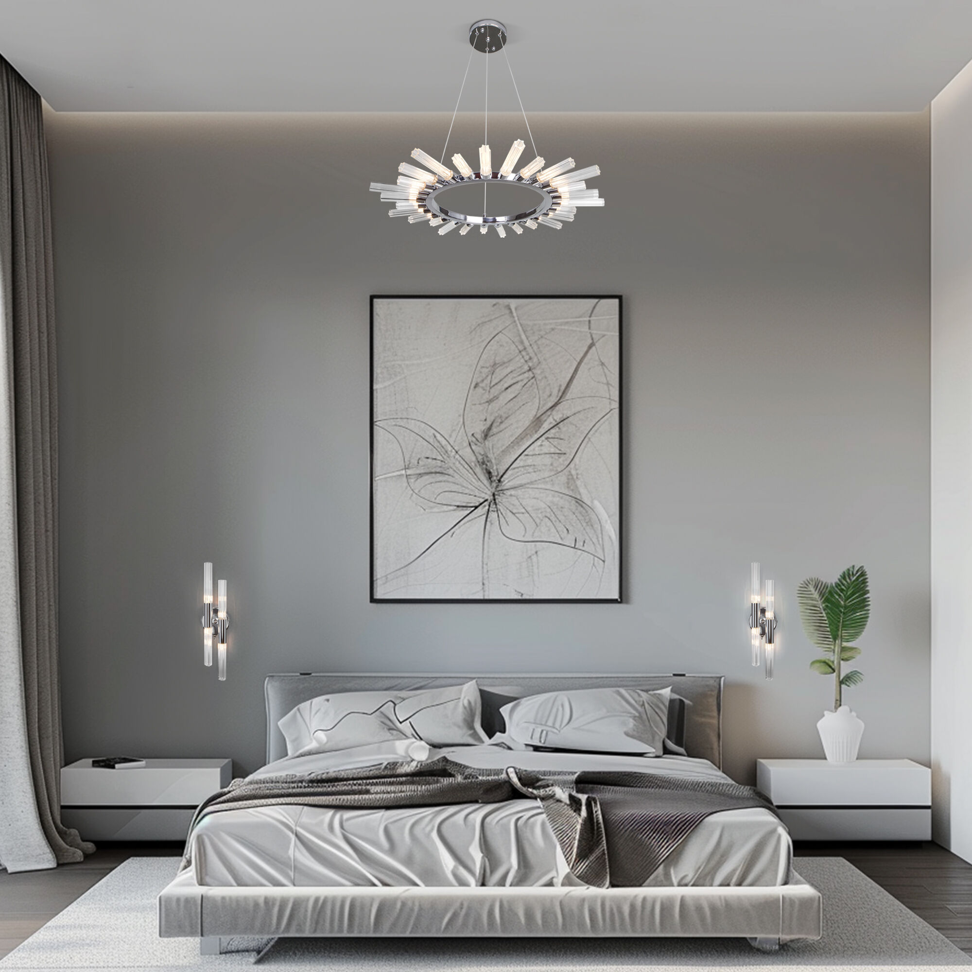 <p>Подвесная люстра 27 рожковая хром предназначена для создания основного освещения в современных интерьерах, подходит для различных типов помещений: гостиная, спальня, загородный дом и рассчитана на площадь освещения 9 м&sup2;.</p> <p>Яркая люстра оснащена патронами с цоколем G4, которые рассчитаны на максимальную мощность ламп 3 Вт. Люстра украшена эффектными стеклянными плафонами. Арматура изготовлена из высококачественного металла с надежным защитным покрытием.</p>