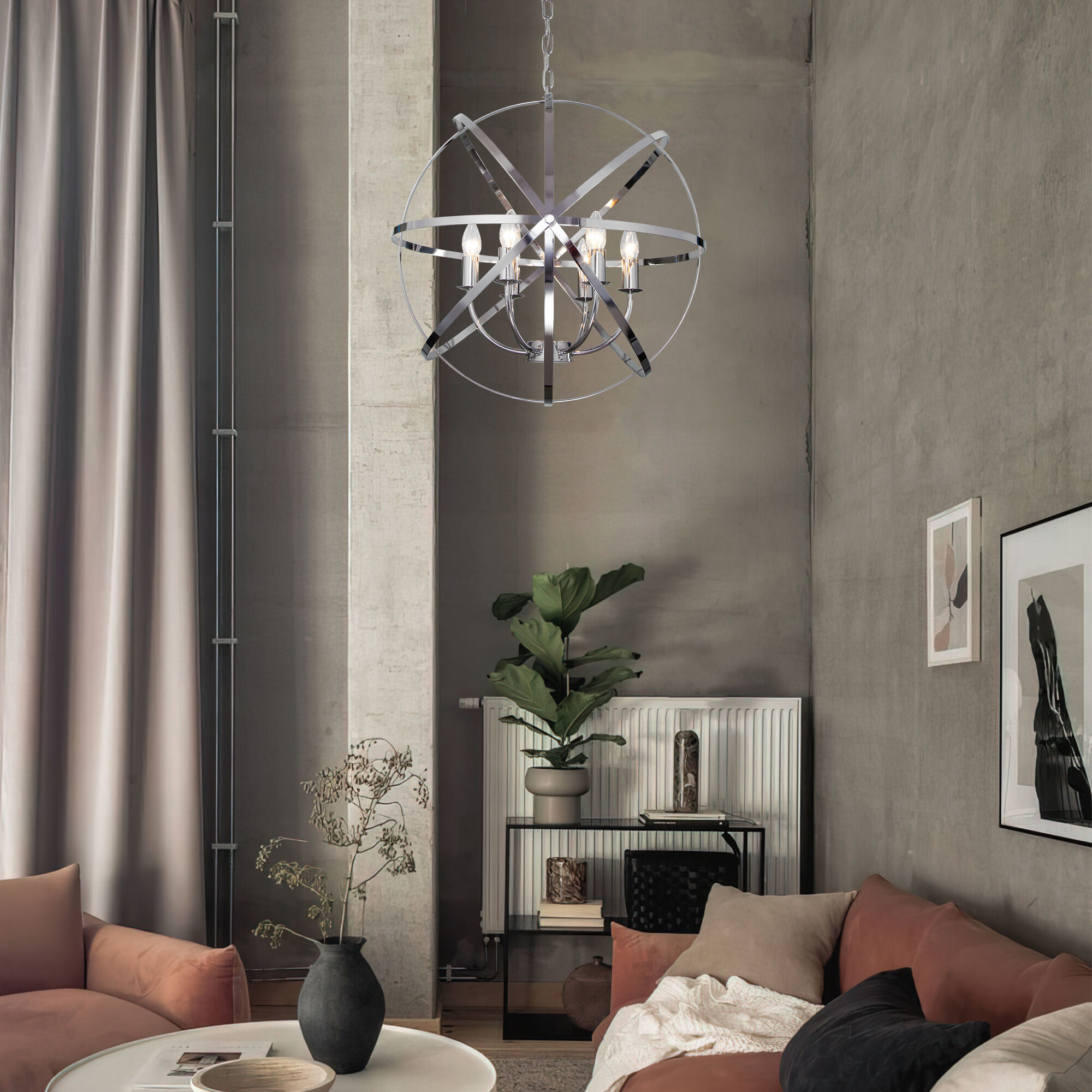 <p>Подвесная люстра Eurosvet 60139/6 цвете хром предназначена для создания основного освещения в современных и классических интерьерах. Подходит для различных типов помещений: гостиная, загородный дом и рассчитана на площадь освещения 10 м кв.</p> <p>Дизайнерская люстра имеет 6 ламп и оснащена патронами с цоколем E14, которые рассчитаны на максимальную мощность ламп 40 Вт. Подвесная люстра совместима с умный дом Minimir Home. Арматура изготовлена из высококачественного металла с надежным защитным покрытием.</p>